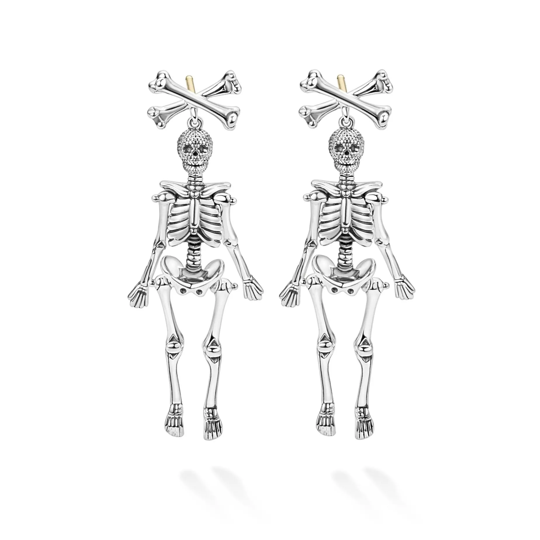 A Lagos Exclusive. Spooky, Scary, Skeletons Form These Sterling Silver Drop Earrings. Skeletons Assembled From Five Different Parts That Make The Pendants Very Movable.