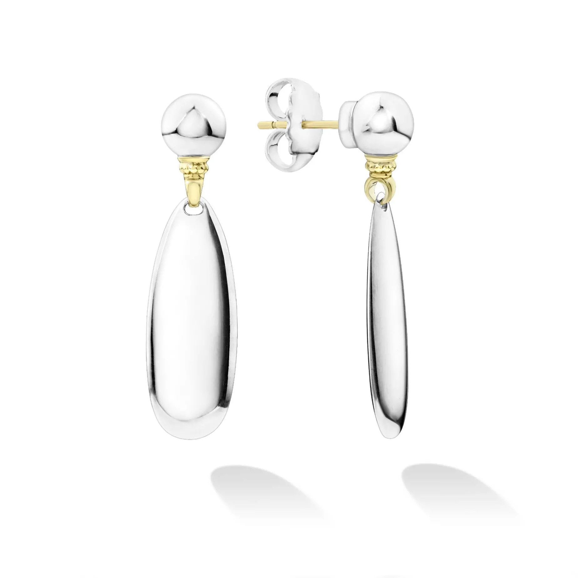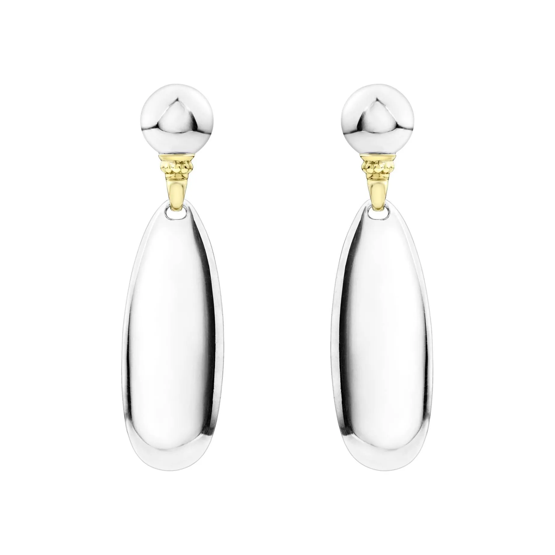 Highly Polished Sterling Silver Drop Earrings With 18K Gold Caviar Accents.