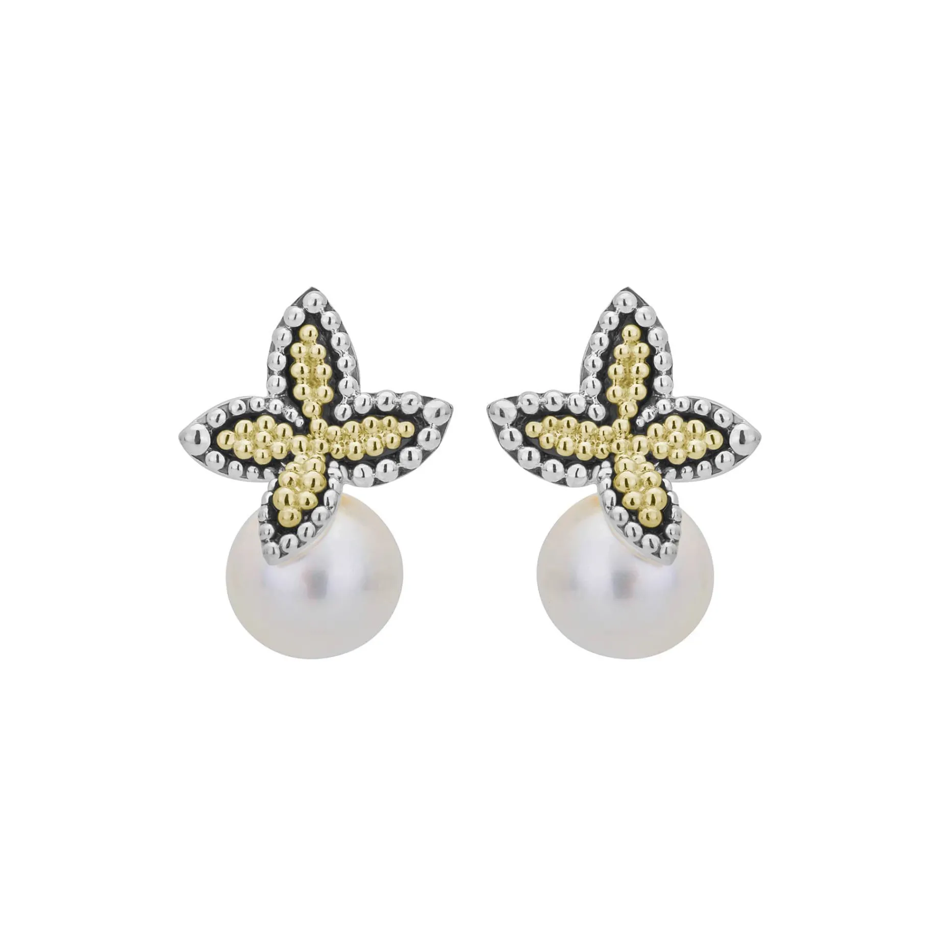 Signature Sterling Silver And 18K Gold Beading Form These Pearl Earrings.