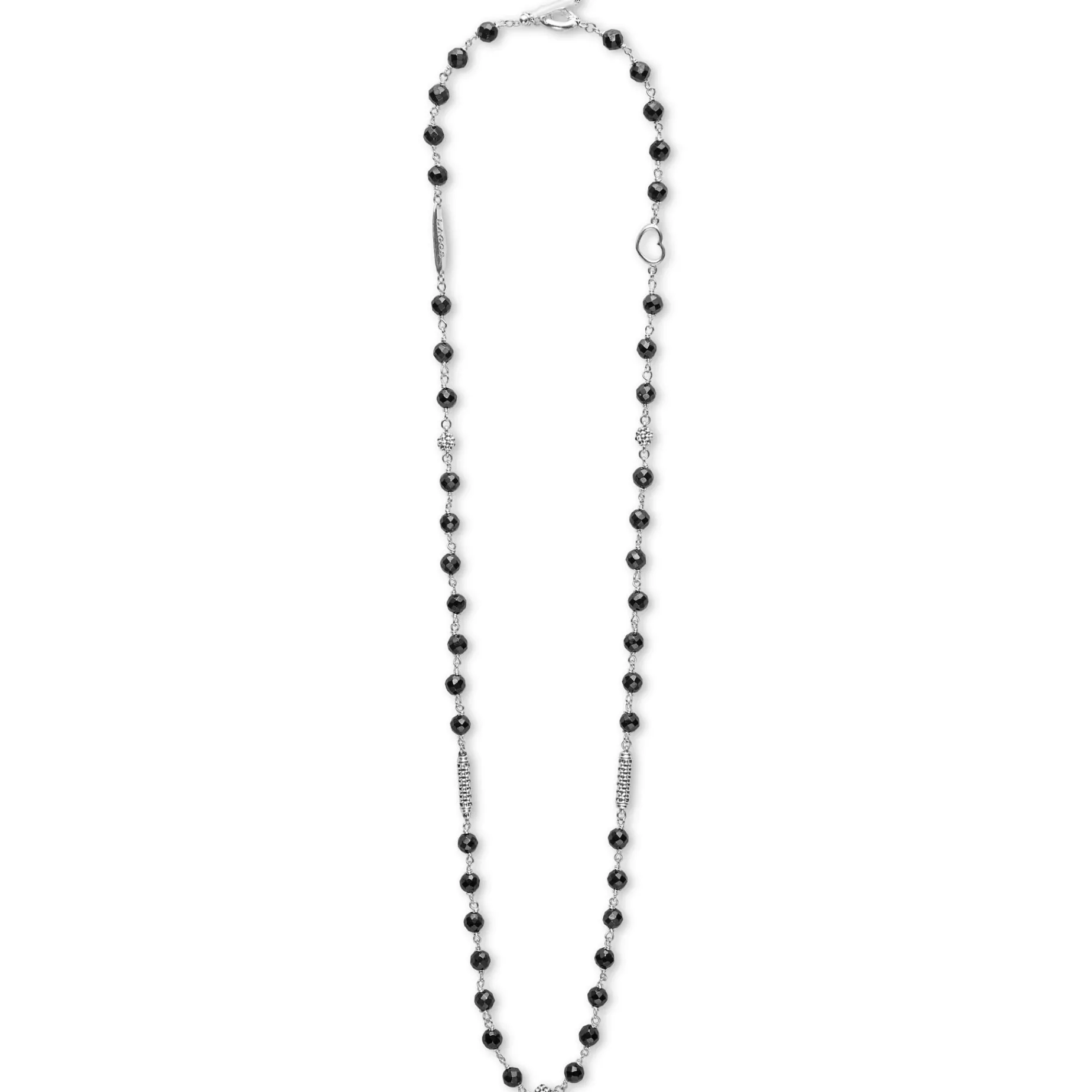Black Ceramic And Sterling Silver Caviar Beaded Necklace Finished With A Toggle Clasp. Necklace Adjustable 16 To 18 Inches.