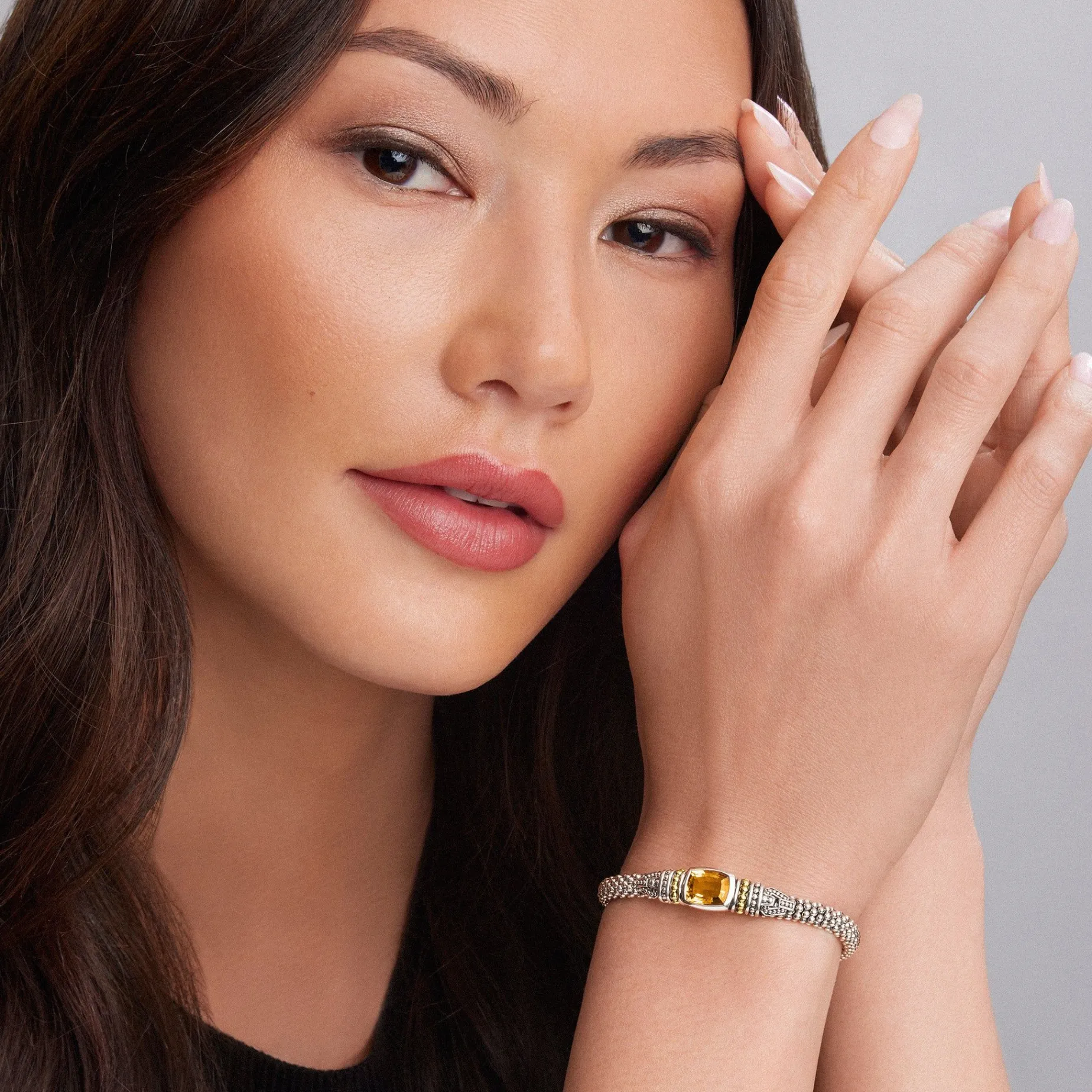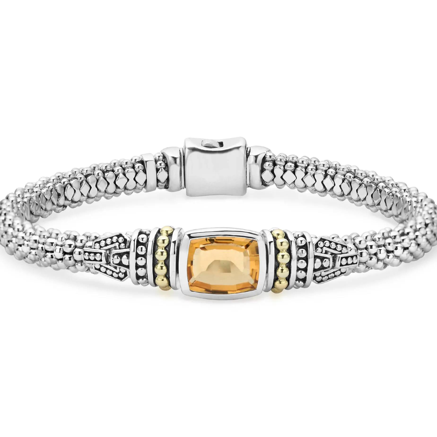 Citrine Bezel-Set Gemstone And Sterling Silver Caviar Beading With 18K Gold Detailing Forms This Bracelet.