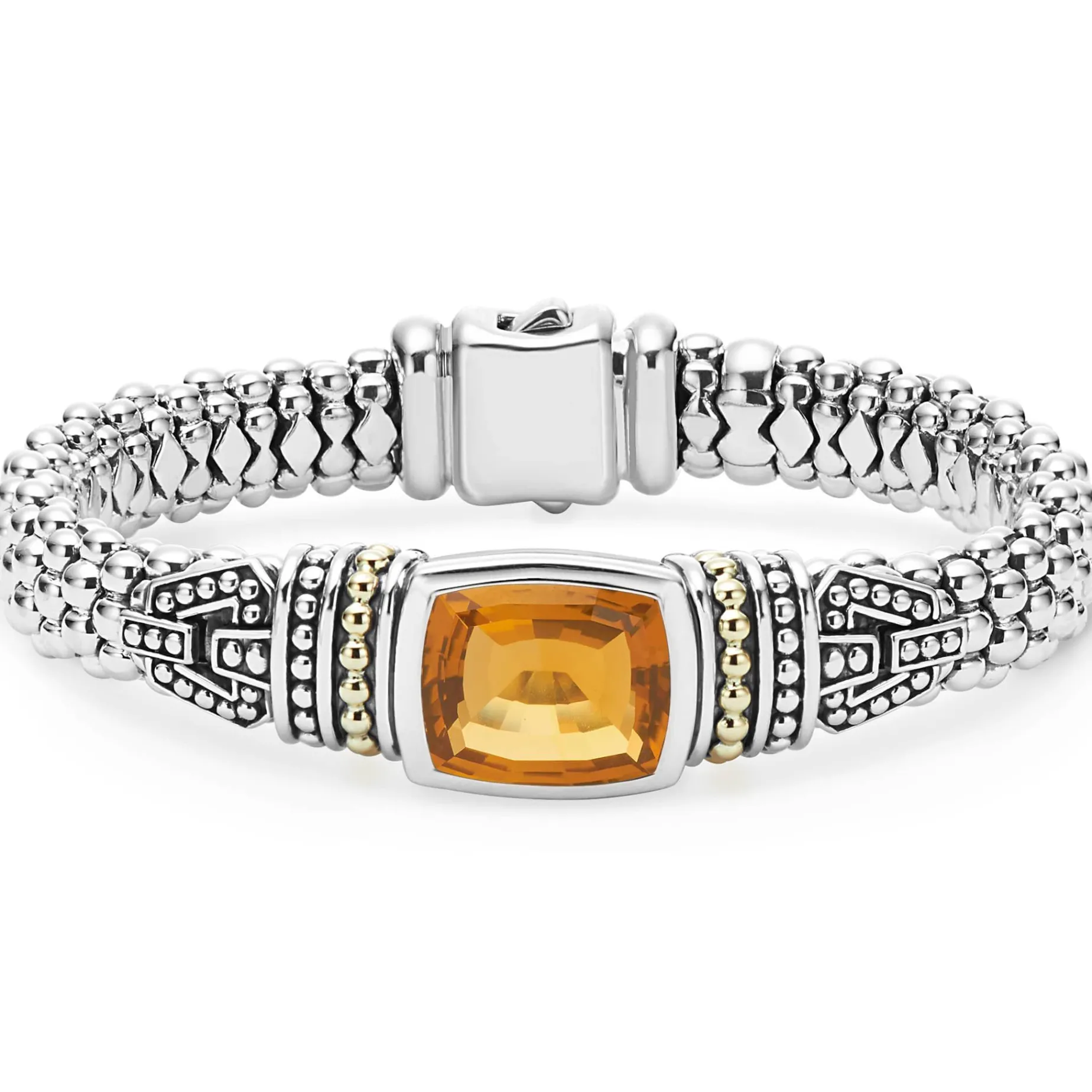 Citrine Bezel-Set Gemstone And Sterling Silver Caviar Beading With 18K Gold Detailing Forms This Bracelet.