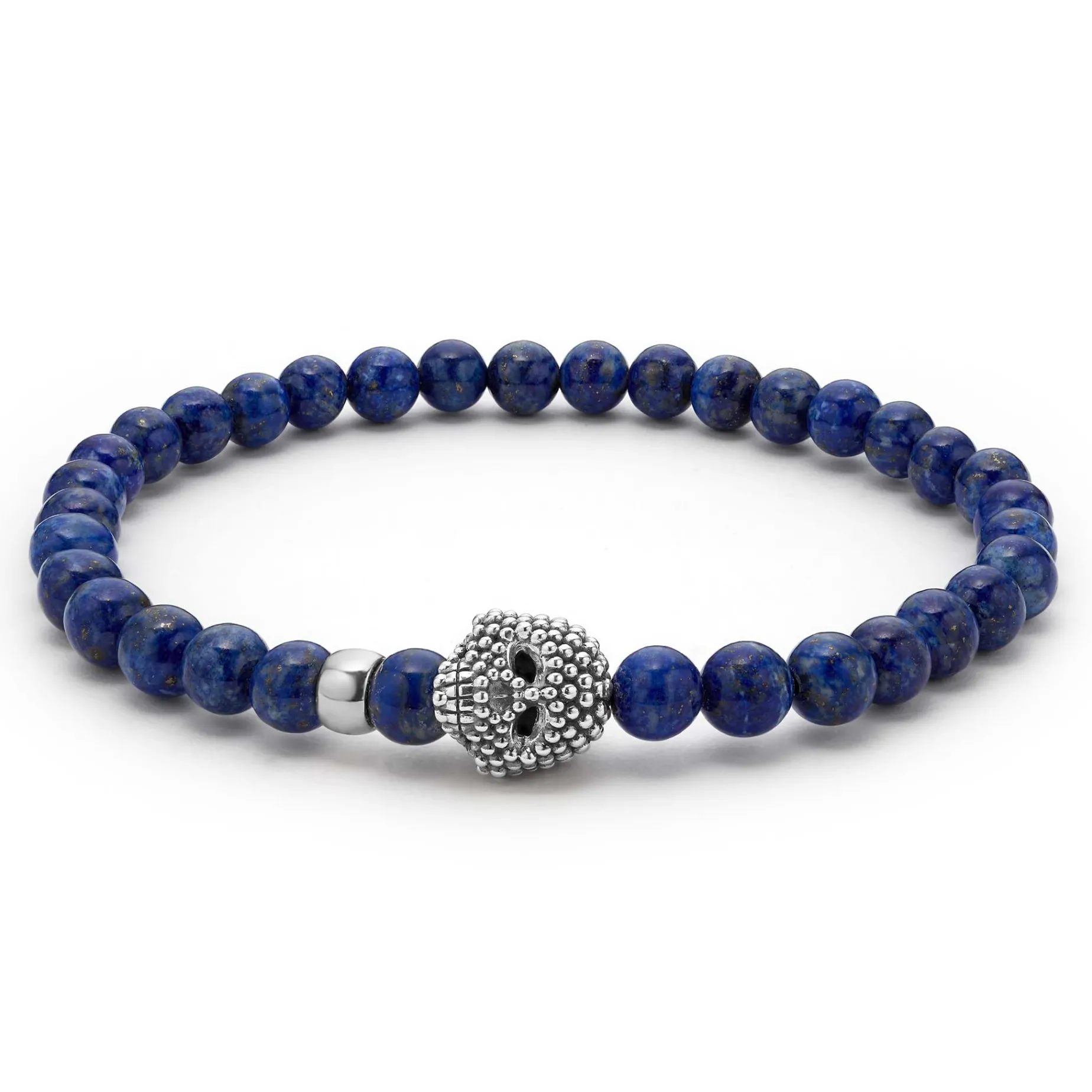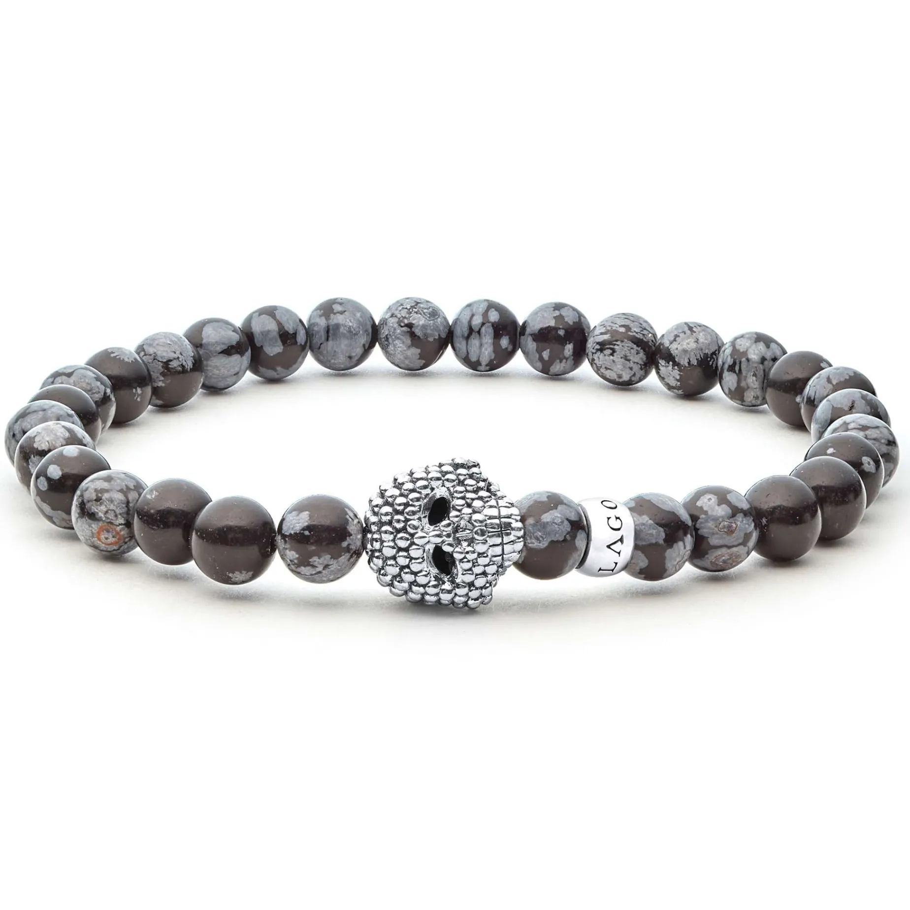 A Lagos Exclusive. Malachite, Lapis, And Snowflake Obsidian Gemstone Bracelets Accented By A Sterling Silver Caviar Beaded Skull.