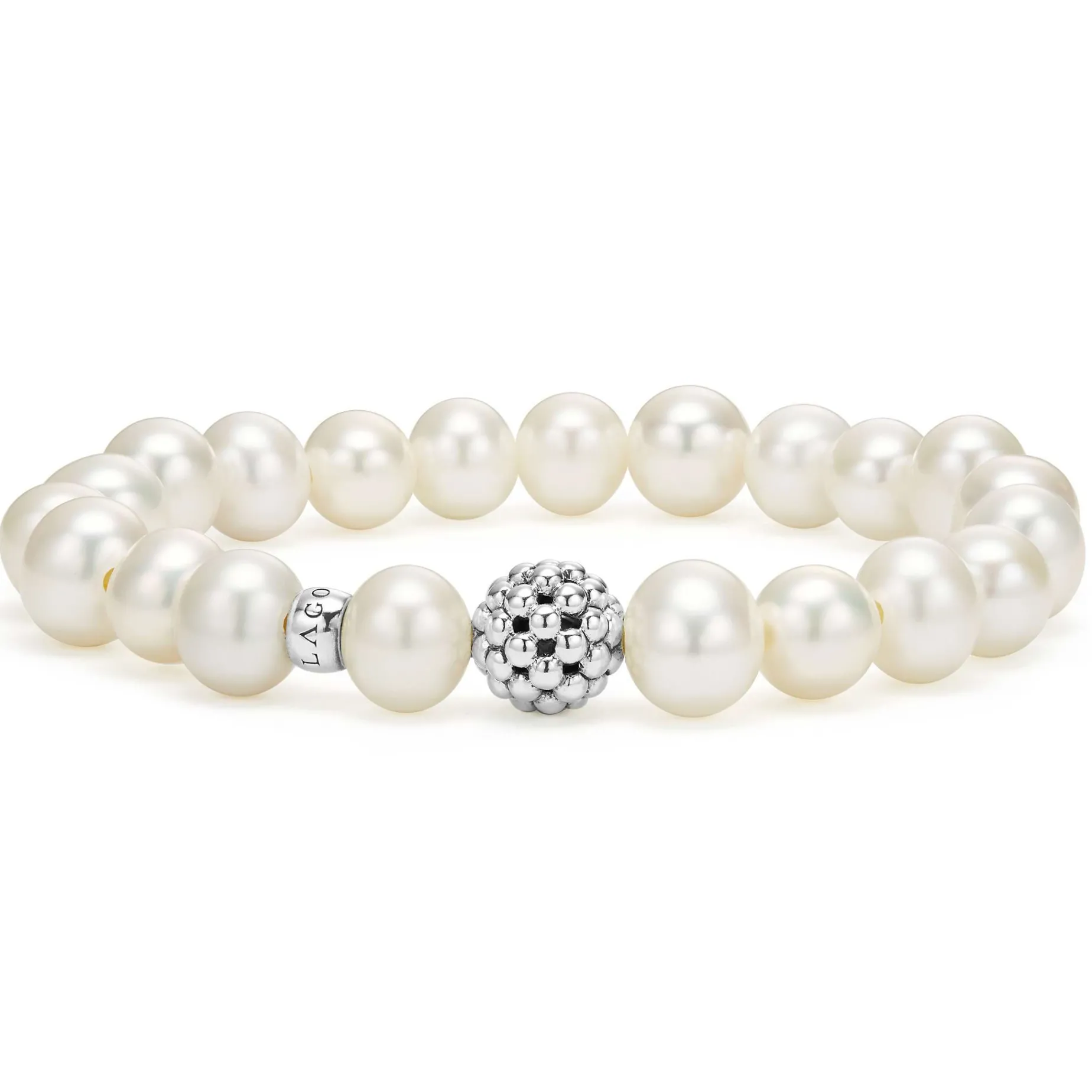 A Lagos Exclusive. Pearl, Lapis, And Aqua Tera Jasper Gemstones Accented By A Sterling Silver Caviar Beaded Station.