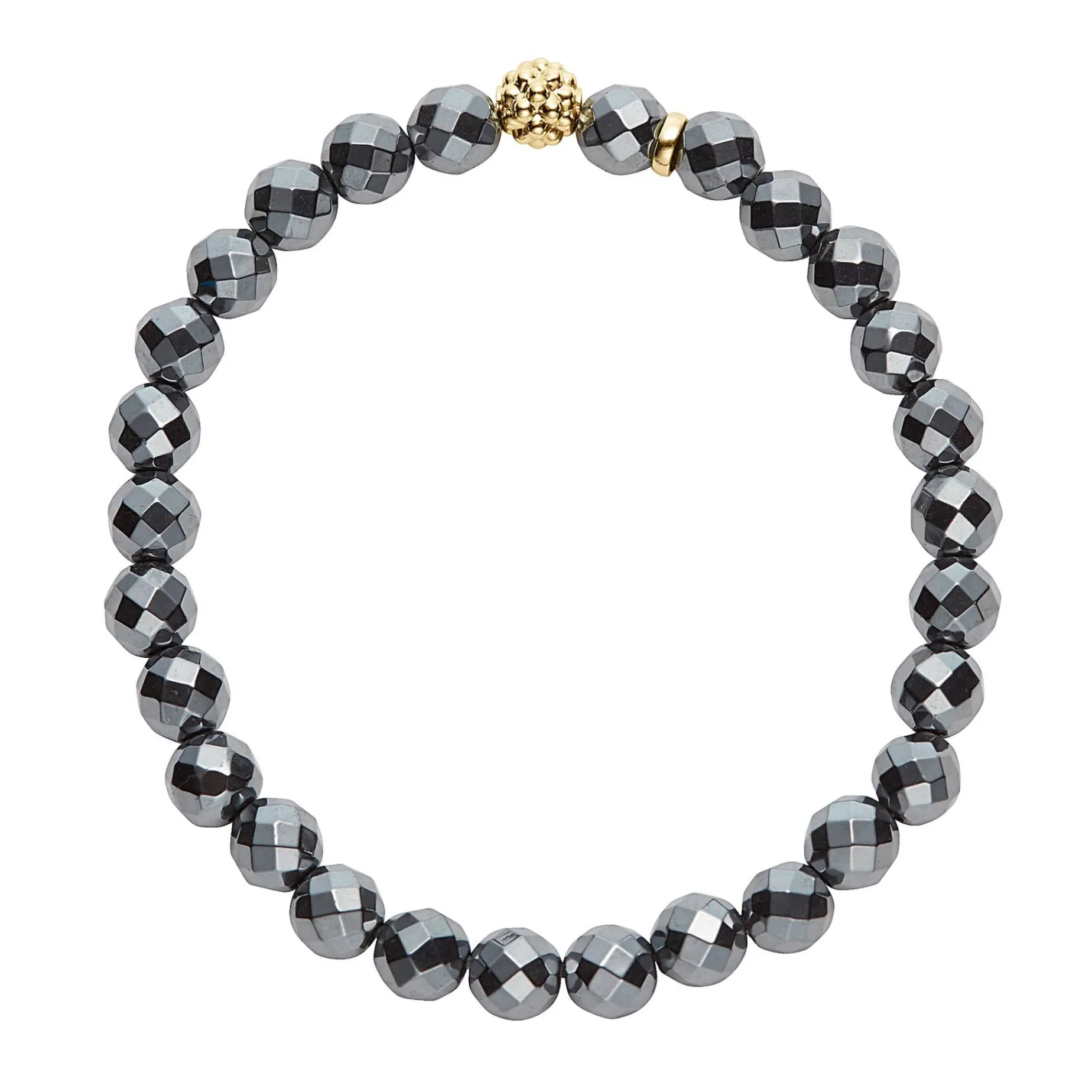 Hematite Gemstone Bracelet With An 18K Gold Caviar Beaded Station That Is Ideal To Style With Various Bracelets For A Unique Look.