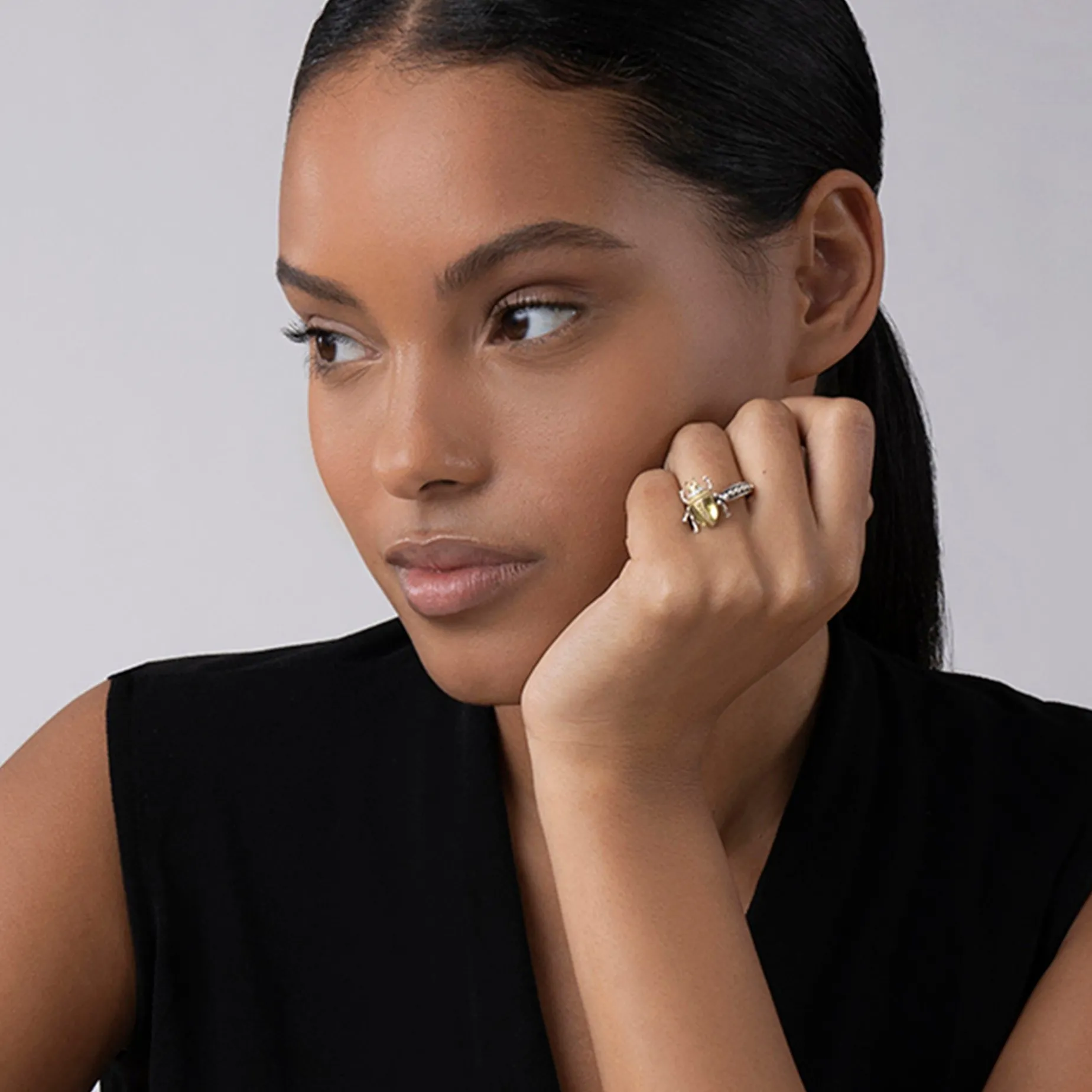 A Lagos Exclusive. Olive Quartz With Diamond, 18K Gold And Sterling Silver Accents Forming A Beetle Ring. Ideal To Pair With Other Signature Rare Wonder Designs.