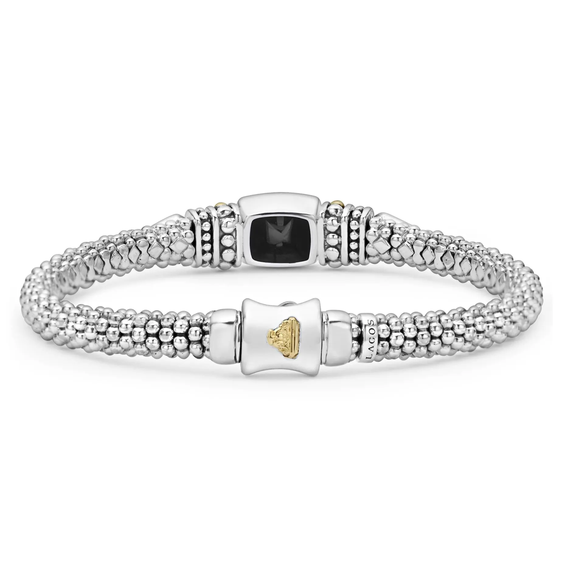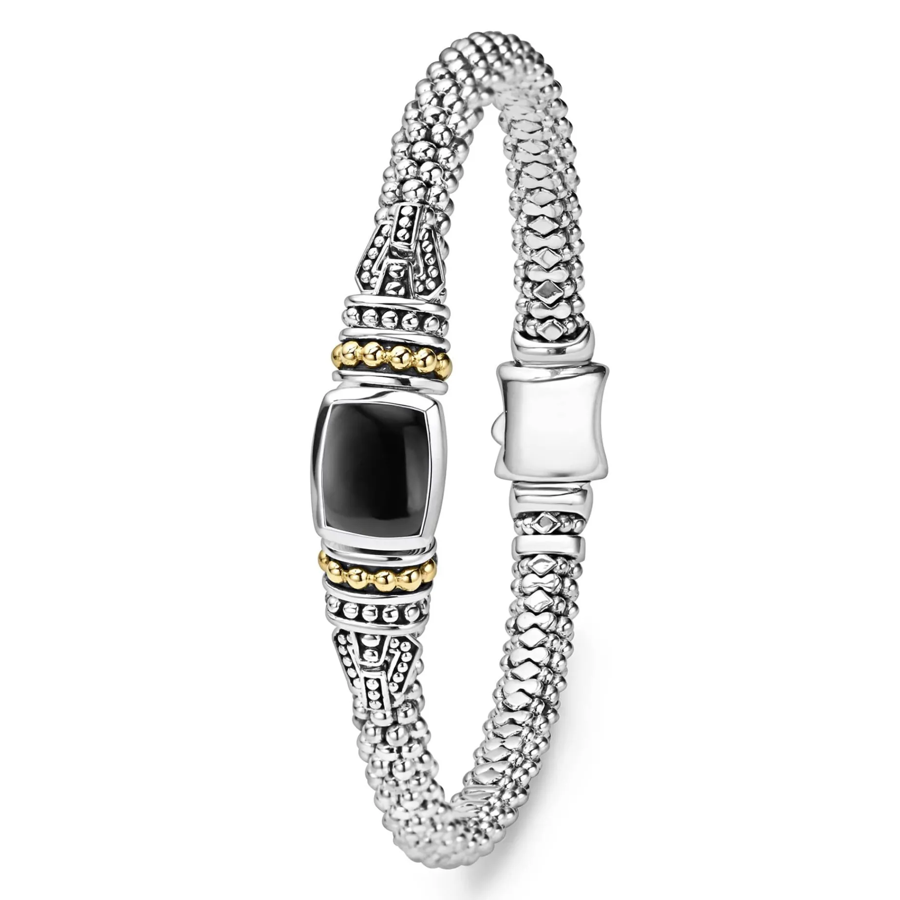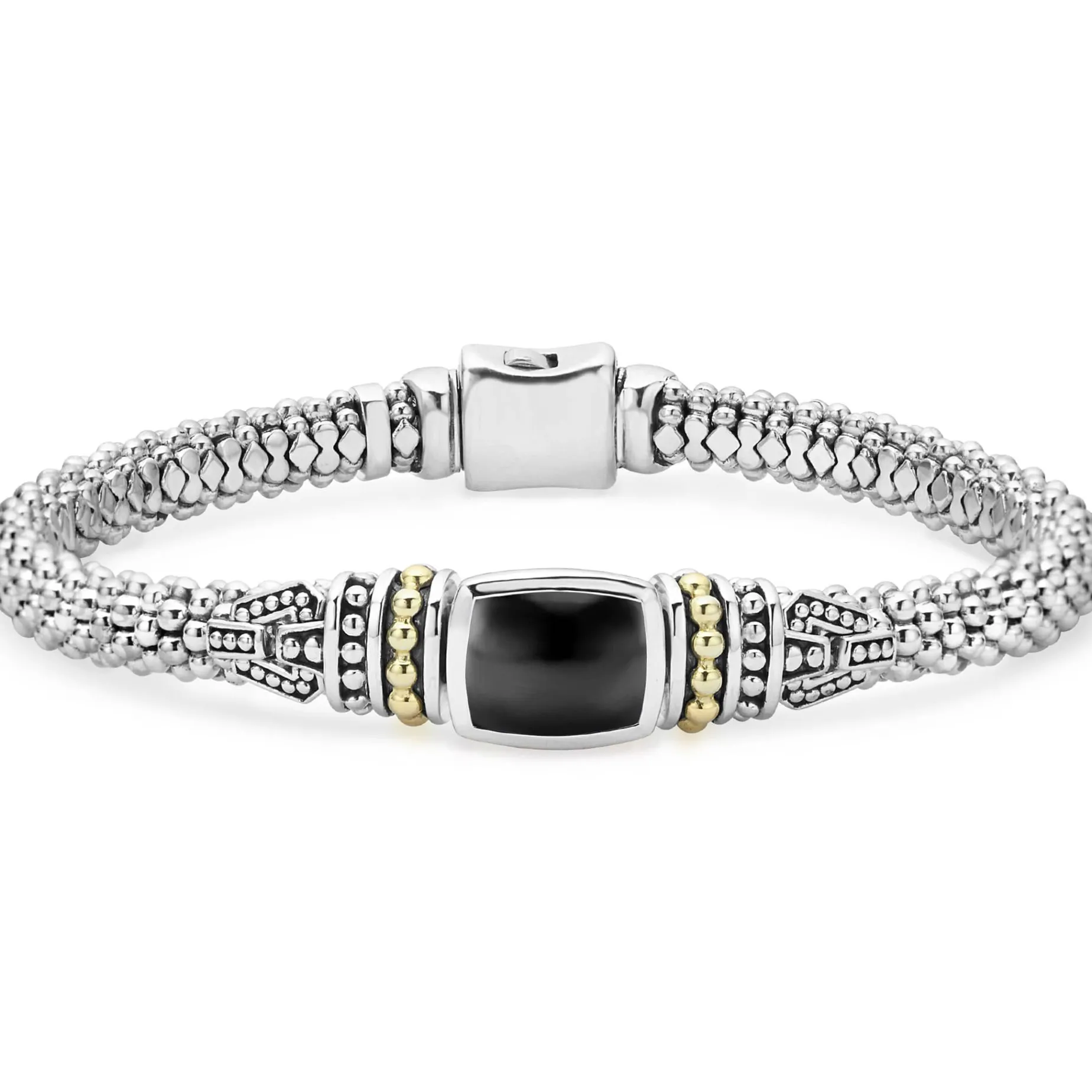 Onyx Bezel-Set Gemstone And Sterling Silver Caviar Beading With 18K Gold Detailing Forms This Bracelet.