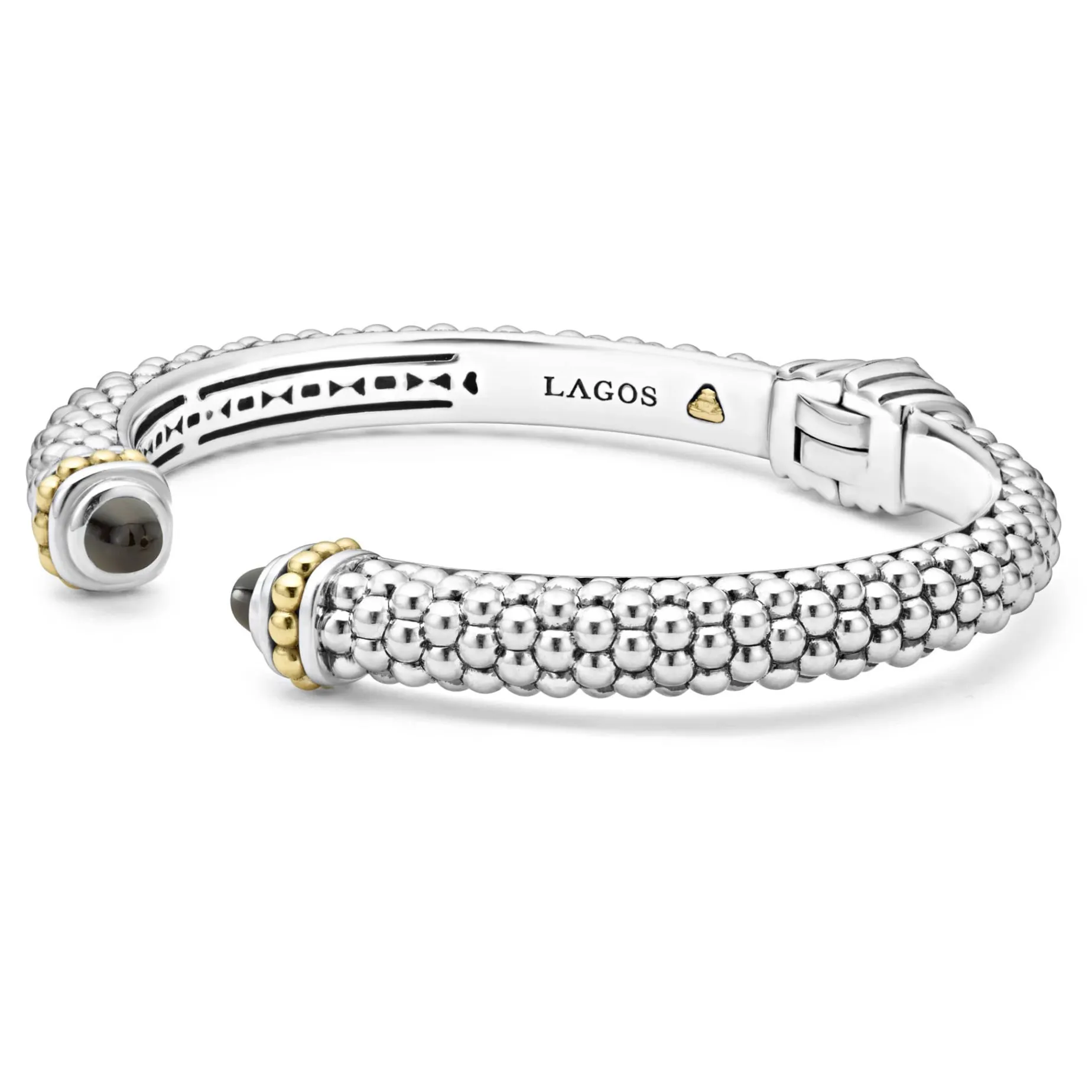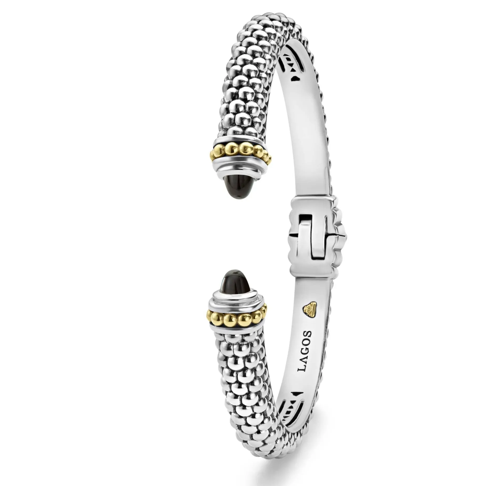 Caviar Beading And Highly Polished Sterling Silver Stations Comprise This Innovative Cuff Bracelet Detailing Onyx Gemstone End Caps.