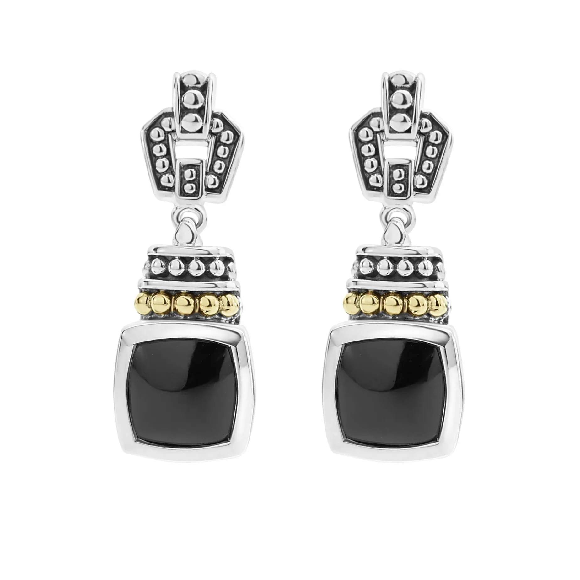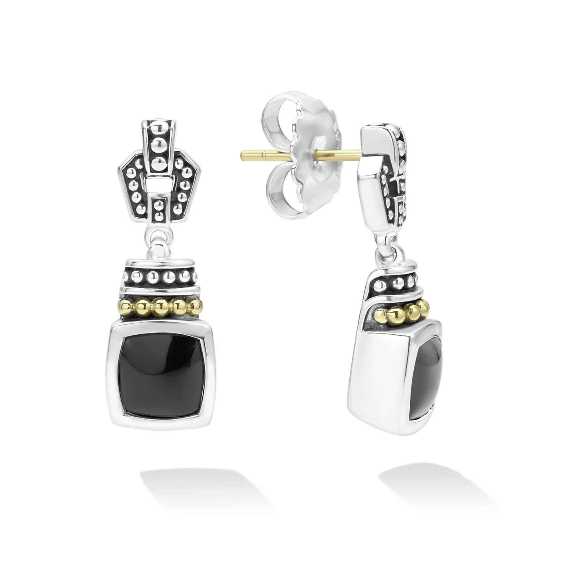 Onyx Bezel-Set Gemstone Drop Earrings With 18K Gold And Sterling Silver Caviar Accents.