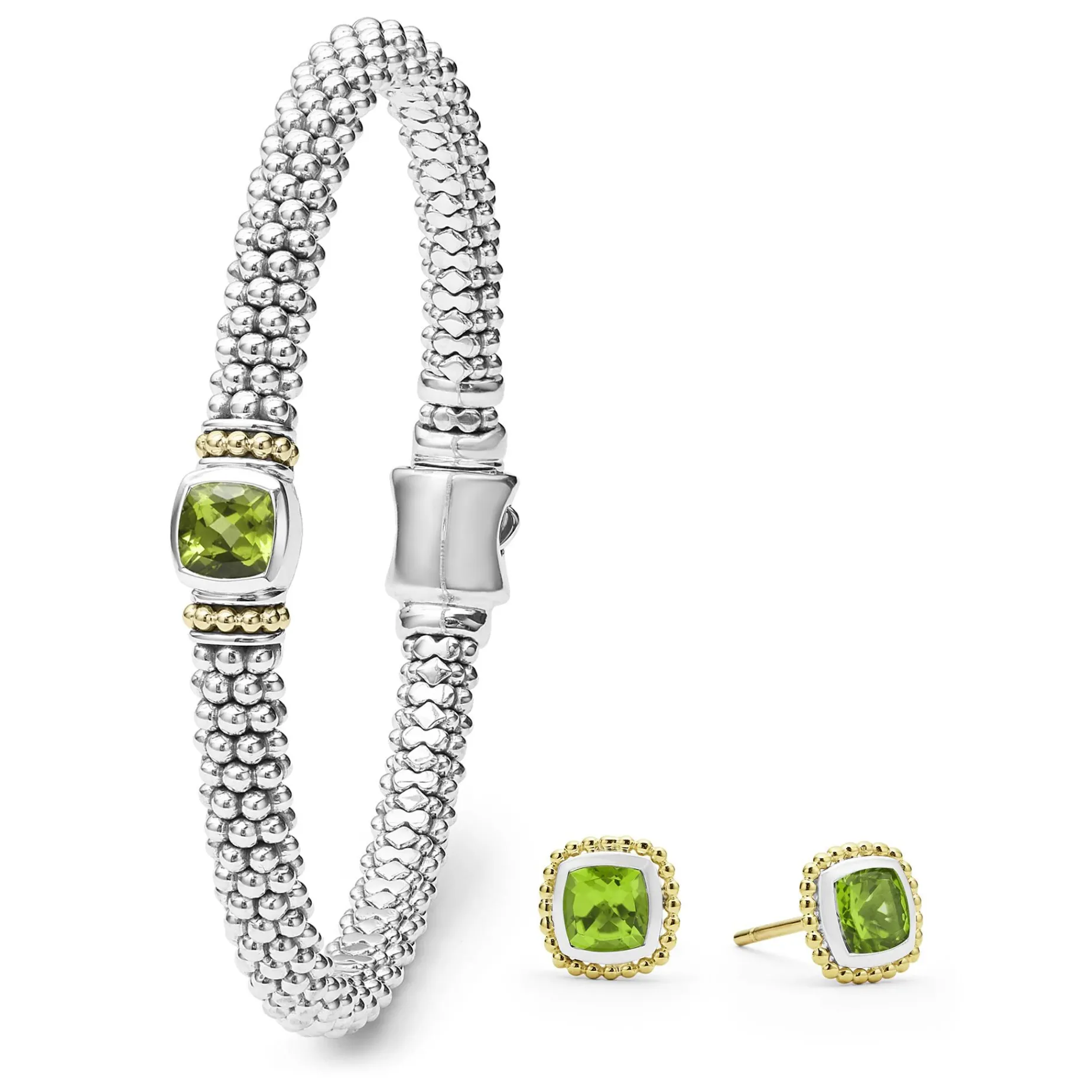 - One Peridot Gemstone And Sterling Silver Caviar Beaded Bracelet Accented With 18K Gold Detailing. Set Includes Size Medium.