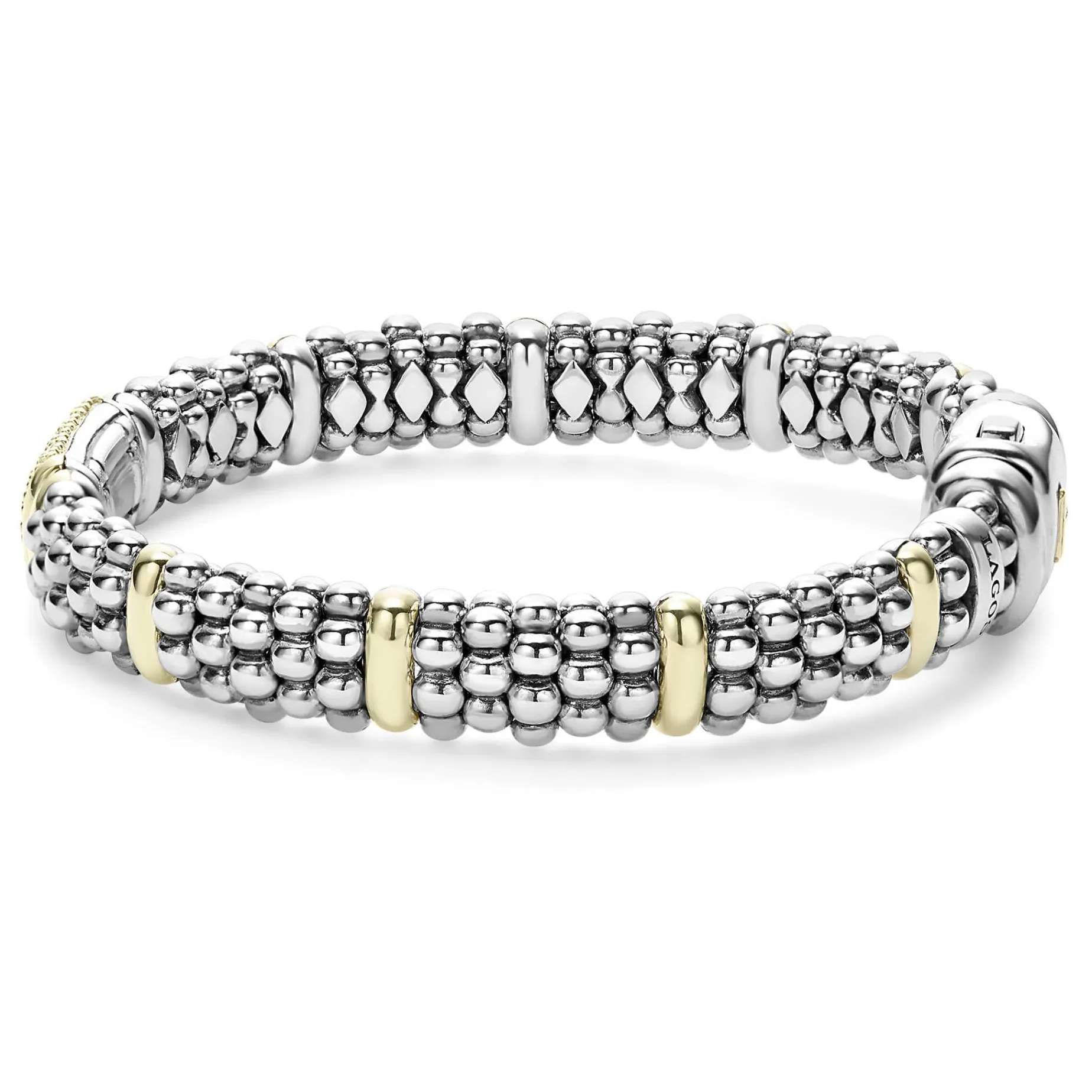 A Lagos Exclusive. Ten 18K Gold Stations Accent This Sterling Silver Caviar Beaded Bracelet With Precious Pink Sapphire Gemstones Set In 18K Gold.