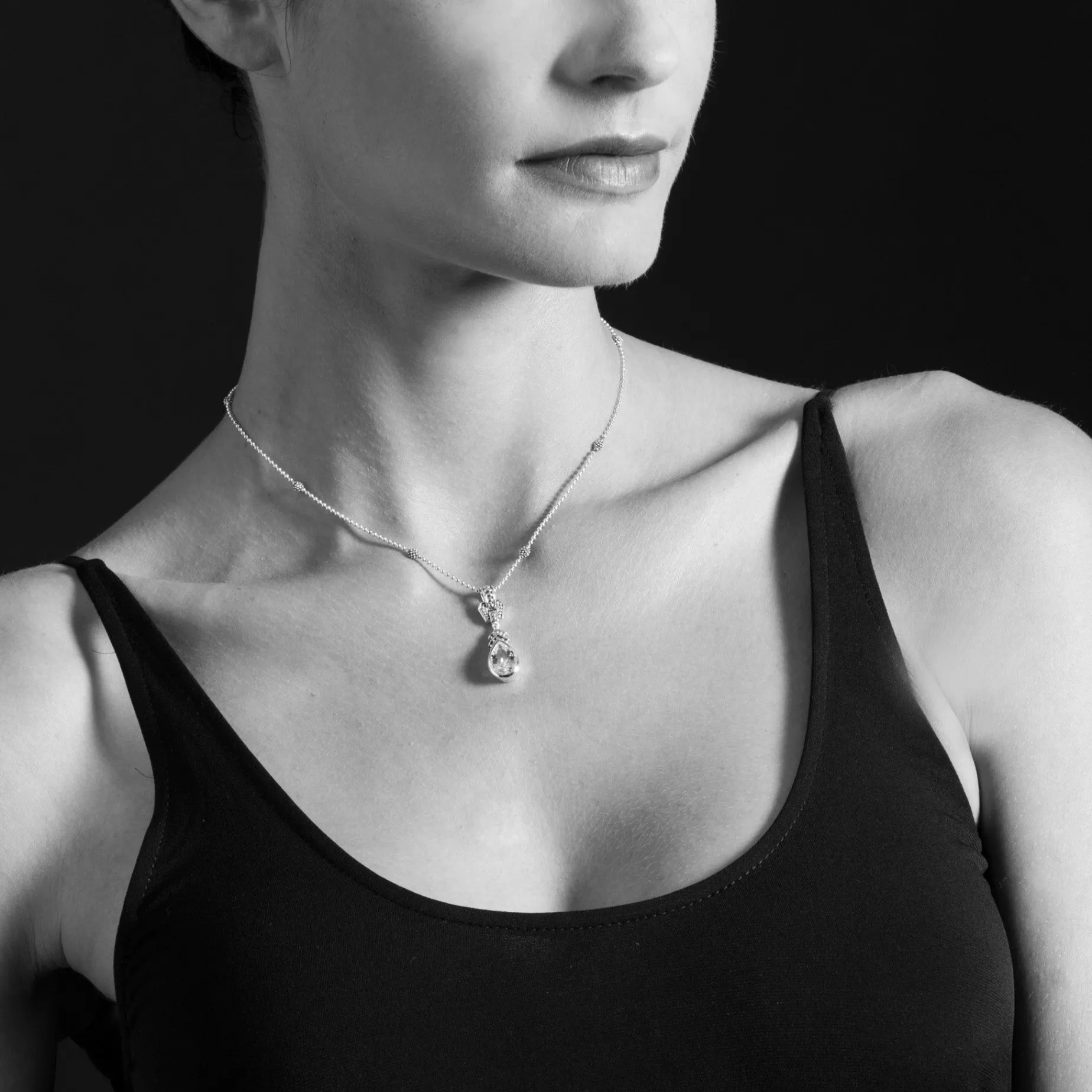 Prasiolite Teardrop Pendant Necklace With 18K Gold And Sterling Caviar Beading Finished On A Versatile Link Necklace With Six Sterling Silver Caviar Beaded Stations.
