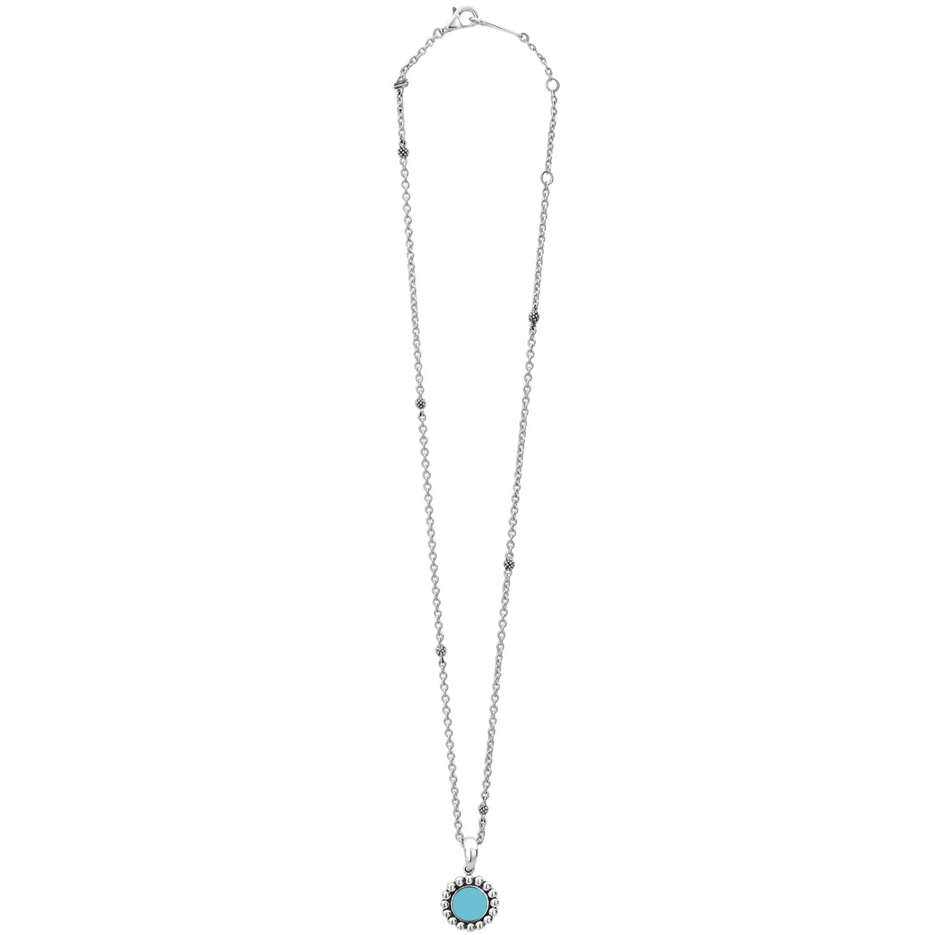 Blue Ceramic Pendant Framed By Sterling Silver Caviar Beading Finished On A Versatile Link Necklace With Six Sterling Silver Caviar Beaded Stations.