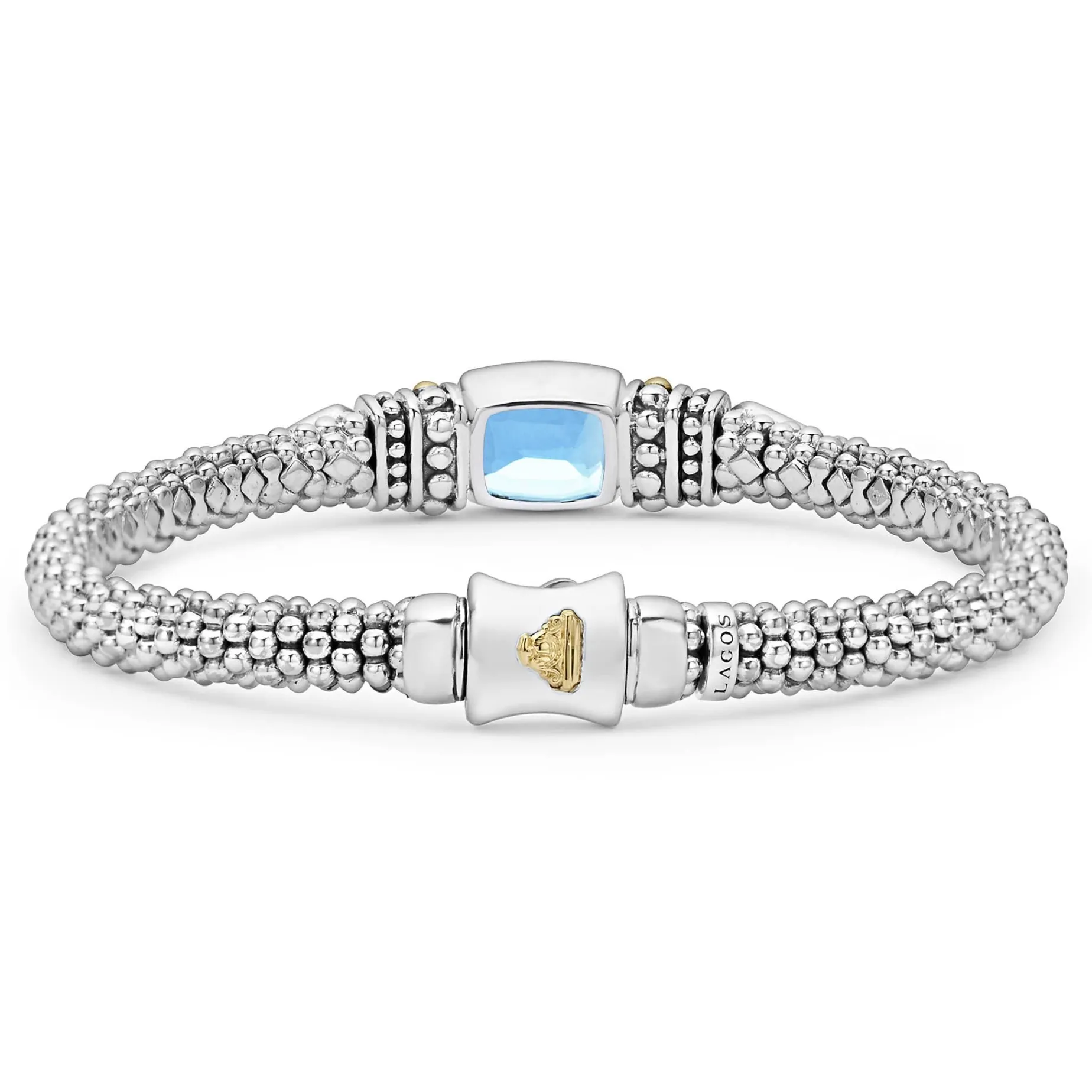 Swiss Blue Topaz Bezel-Set Gemstone And Sterling Silver Caviar Beading With 18K Gold Detailing Forms This Bracelet.