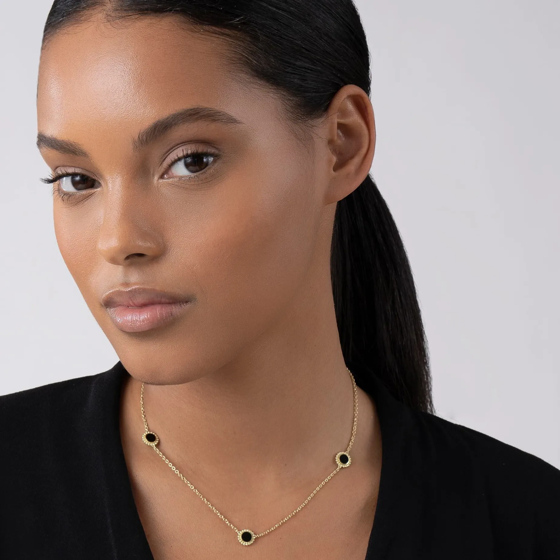 Gemstones<LAGOS Three Station Round Onyx Necklace