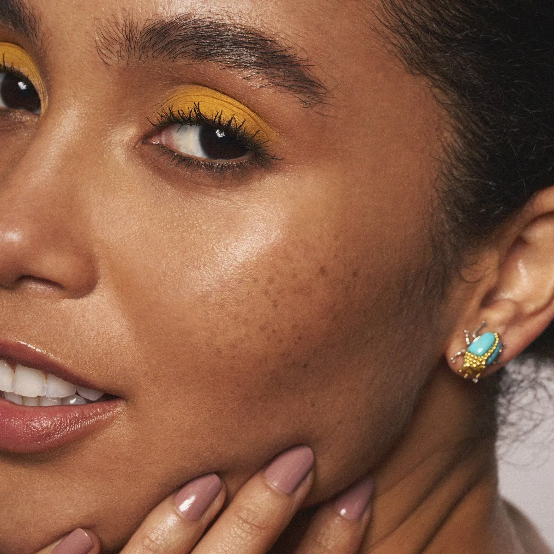 A Lagos Exclusive. Turquoise With 18K Gold And Sterling Silver Accents Forming These Beetle Stud Earrings.