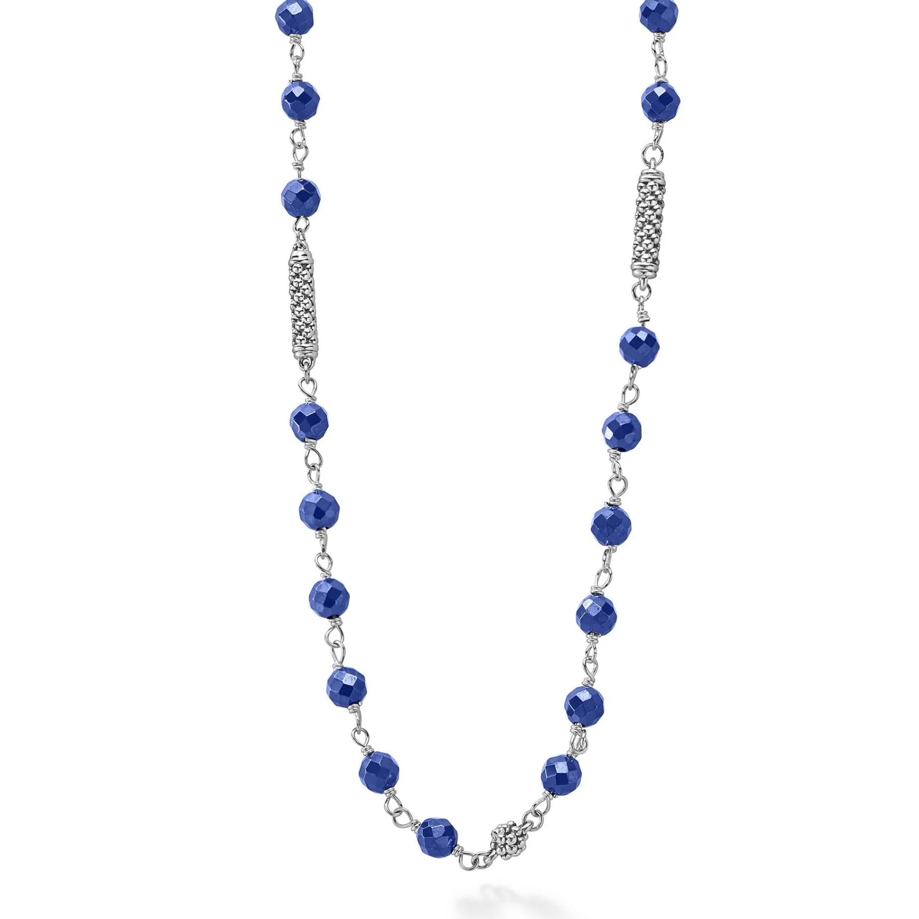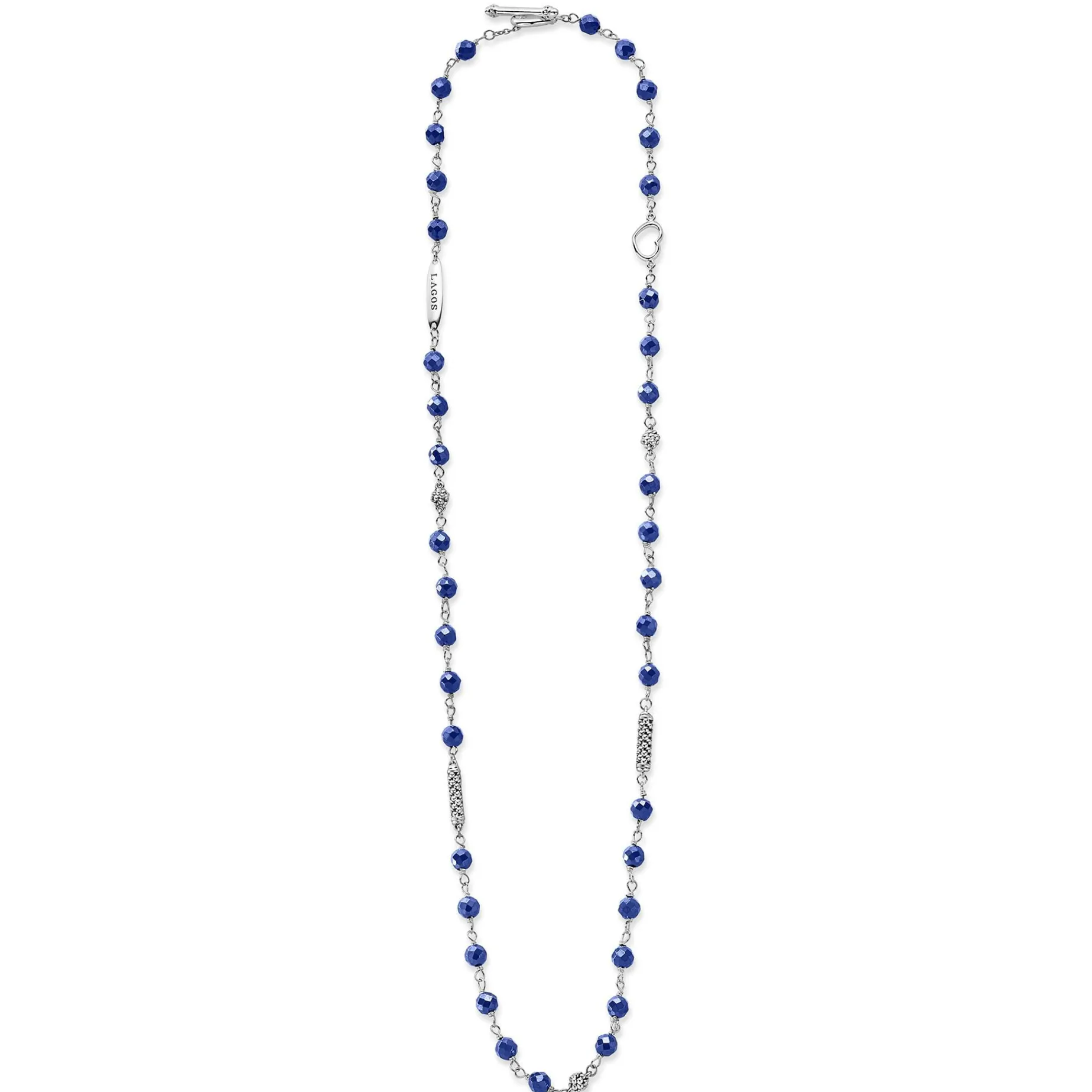 Ultramarine Ceramic And Sterling Silver Caviar Beaded Necklace Finished With A Toggle Clasp. Necklace Adjustable 16 To 18 Inches.