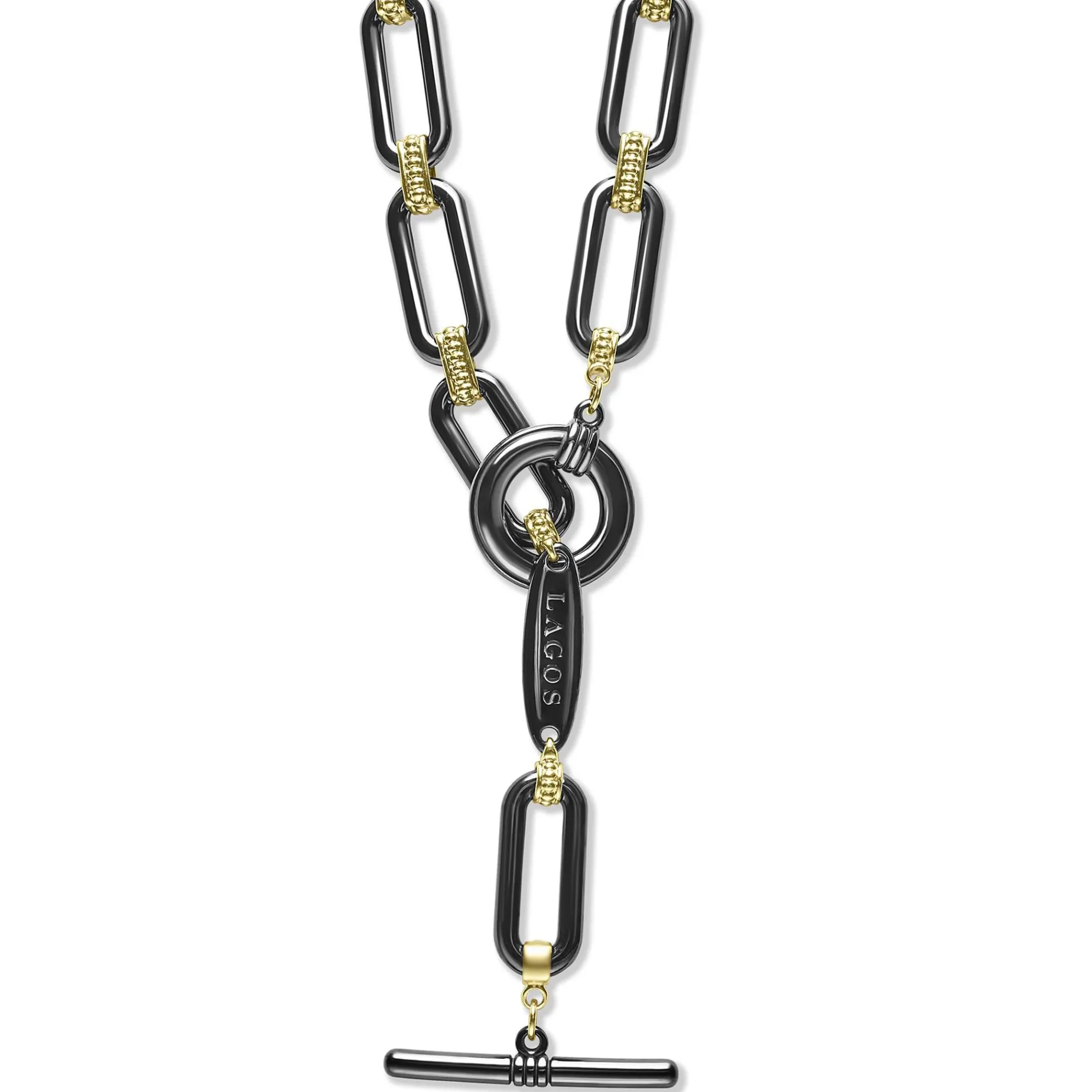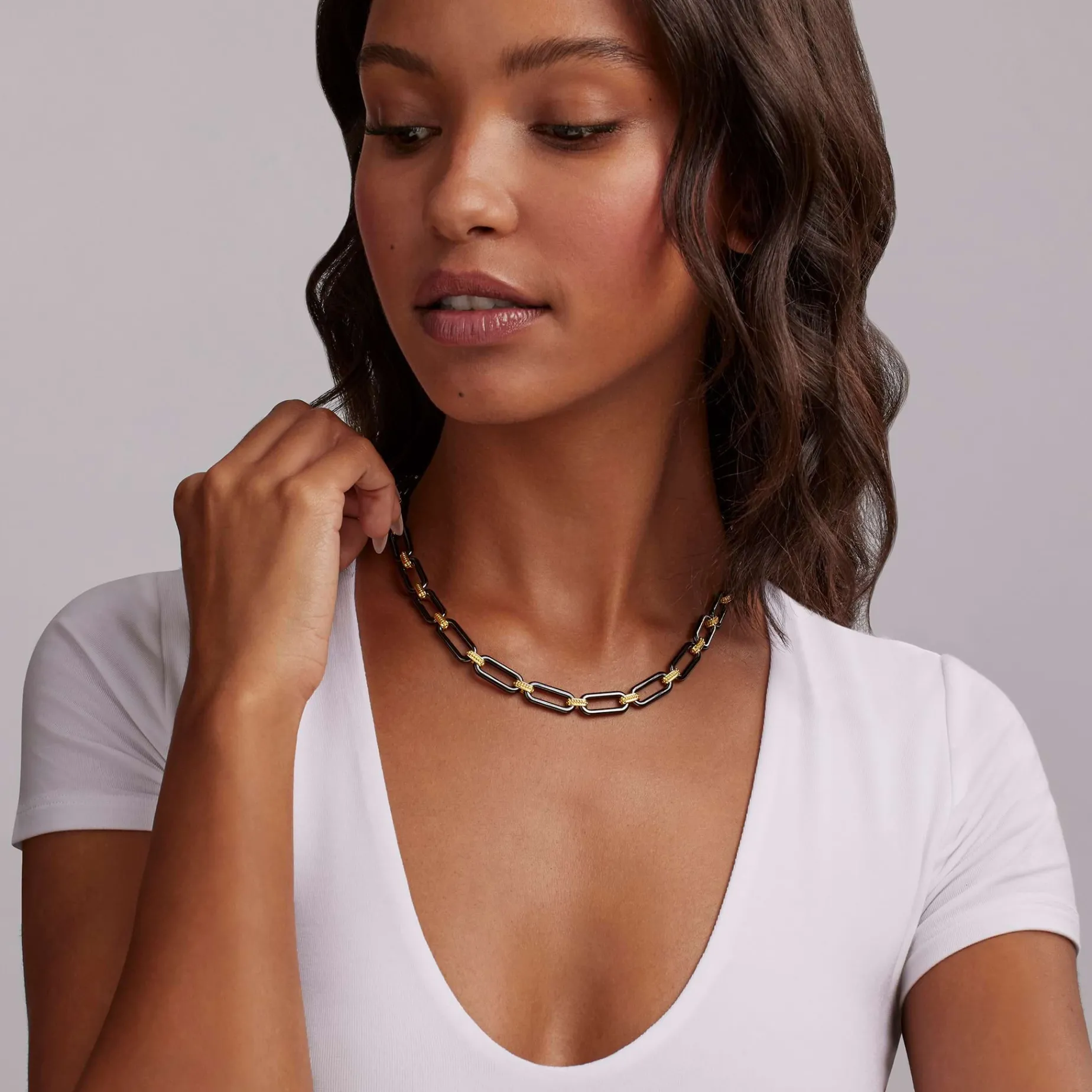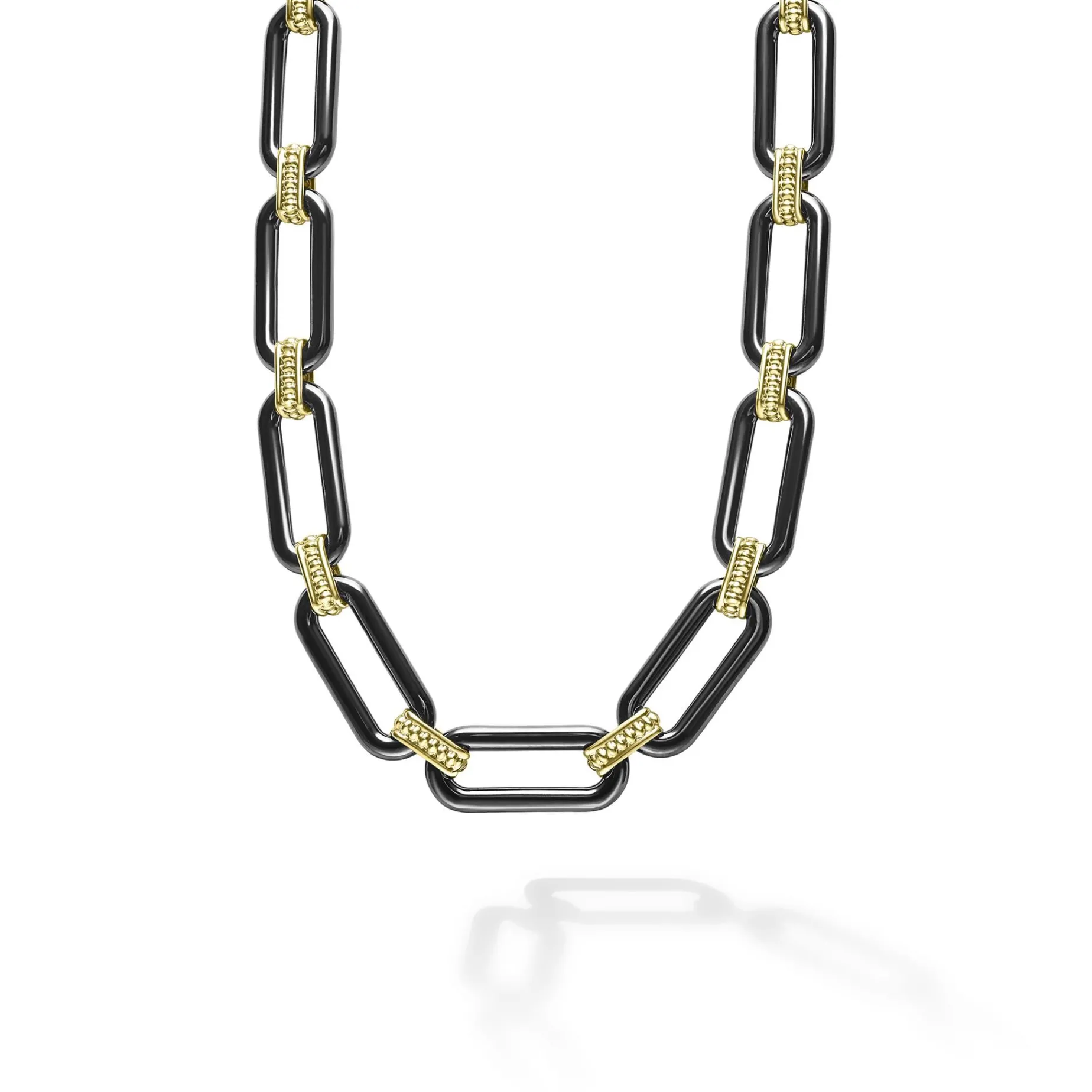 Black Ceramic And 18K Gold Variations Of Caviar Beading & Fluting Elements Form This Bold Link Necklace.