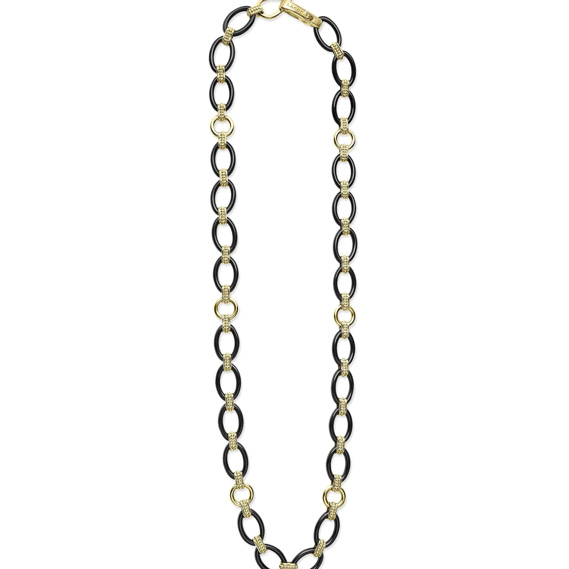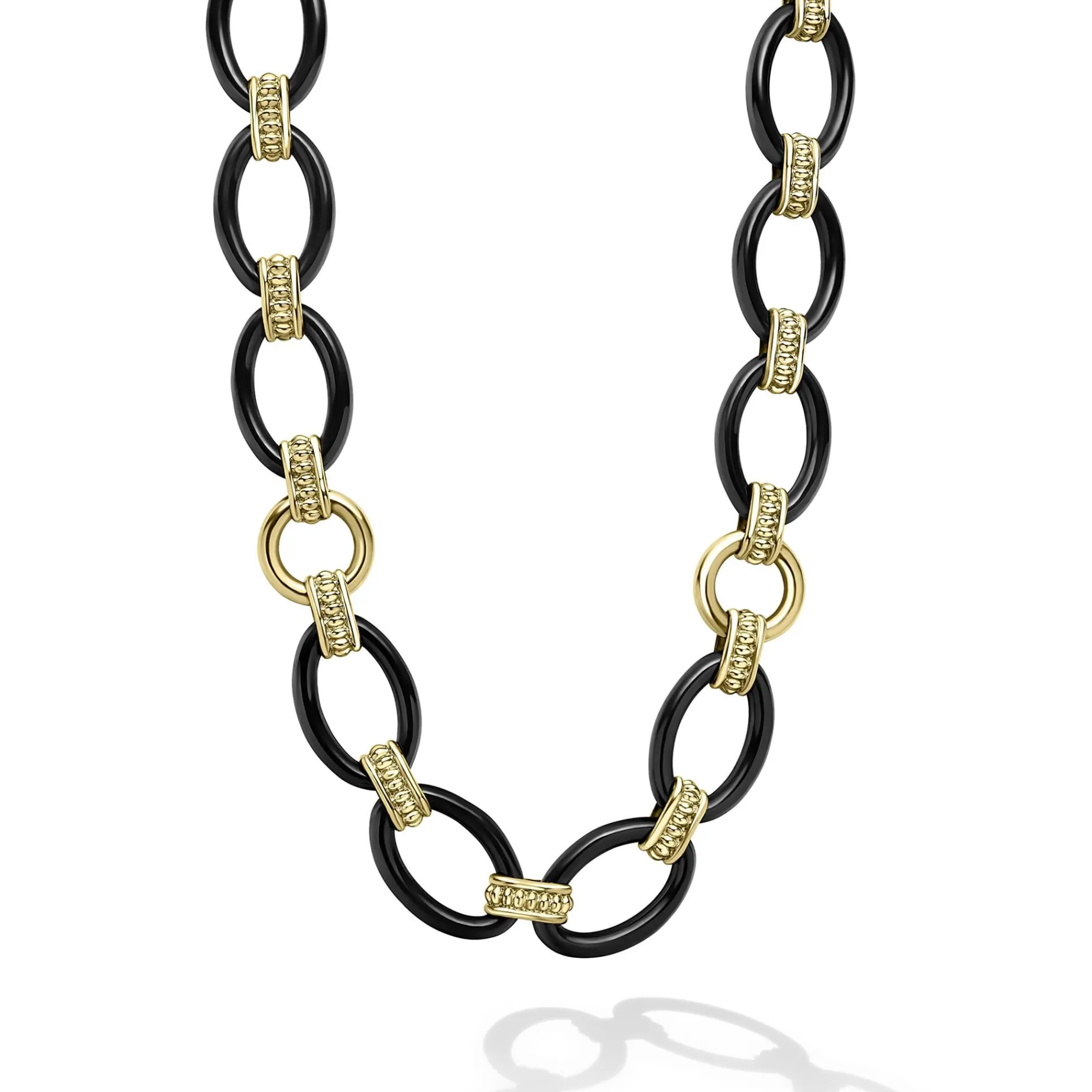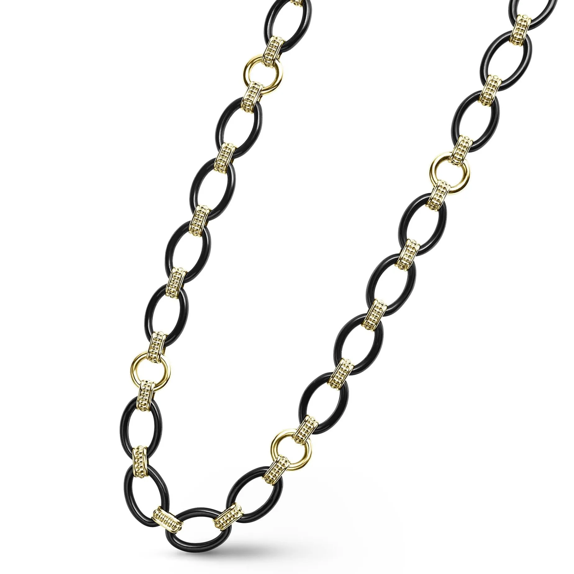 A Classic Necklace With 18K Gold And Black Ceramic Oval And Beaded Links.
