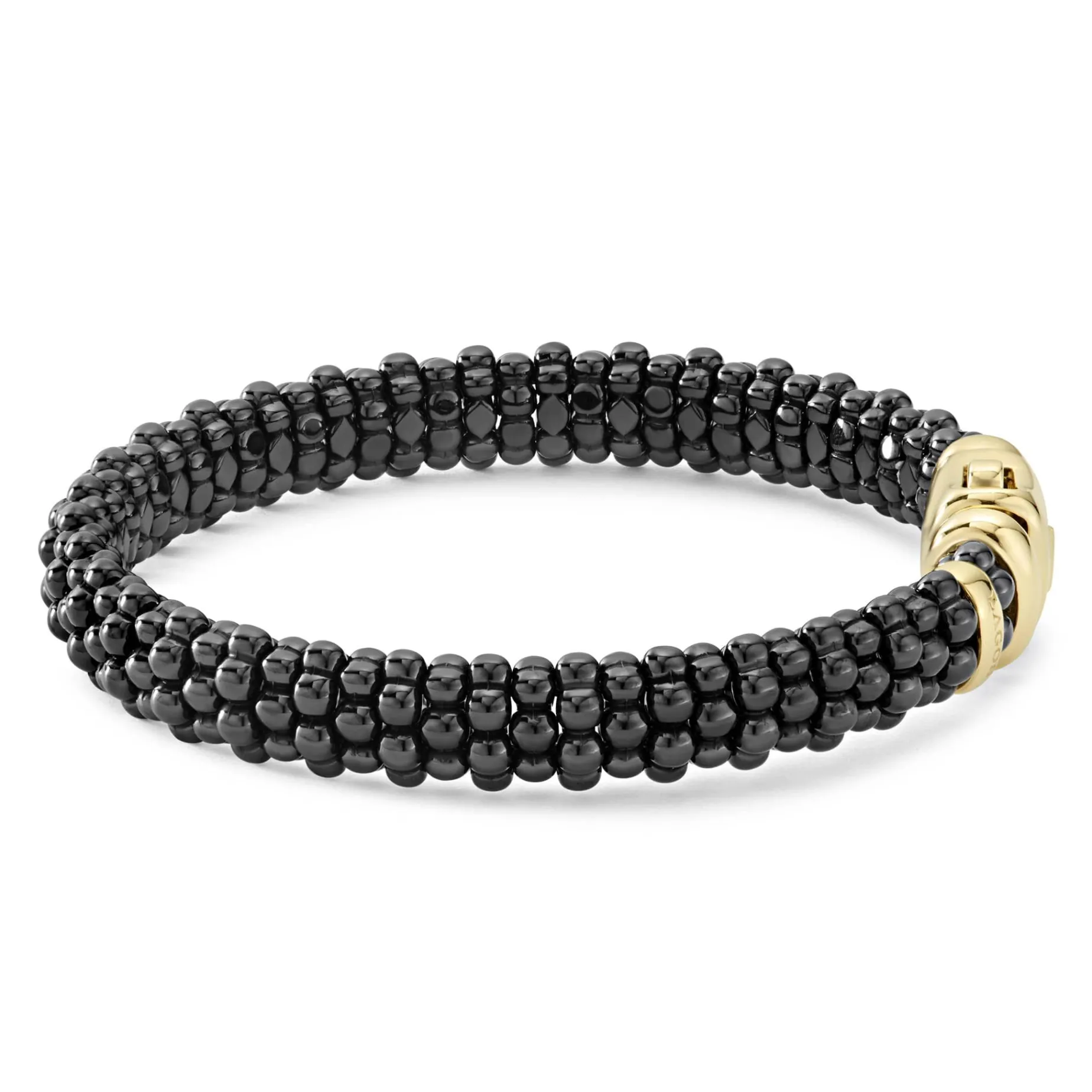 Classic Black Ceramic Caviar Beading Forms This Signature Bracelet. Finished With A Classic 18K Gold Box Clasp.