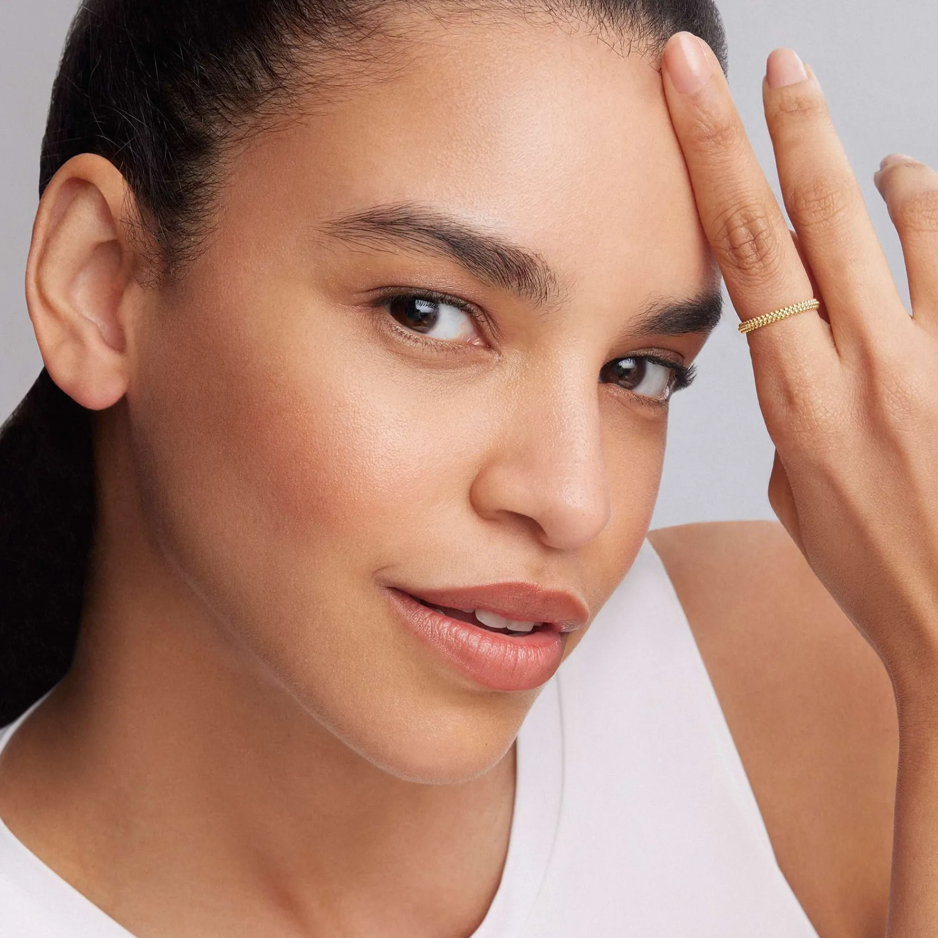 An 18K Gold Caviar Beaded Stacking Ring. Perfect To Layer With Other Rings.