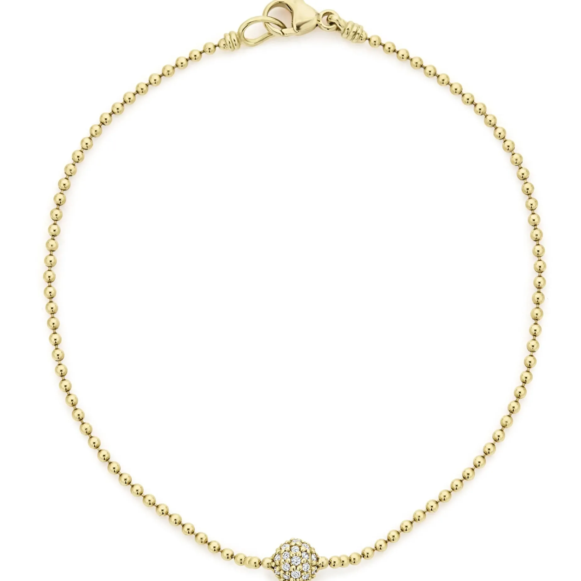 A Single Pavé Diamond Sphere And An 18K Gold Strand Form This Bracelet. Lagos Diamonds Are The Highest Quality Natural Stones.