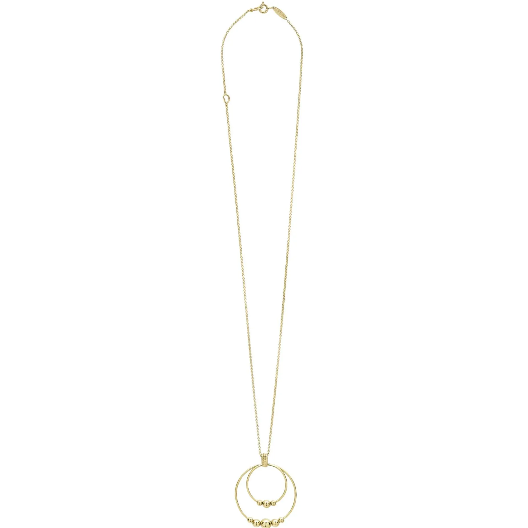 Two 18K Gold Circles With Graduated Beaded Accents Form This Pendant Finished On A Chain Necklace.