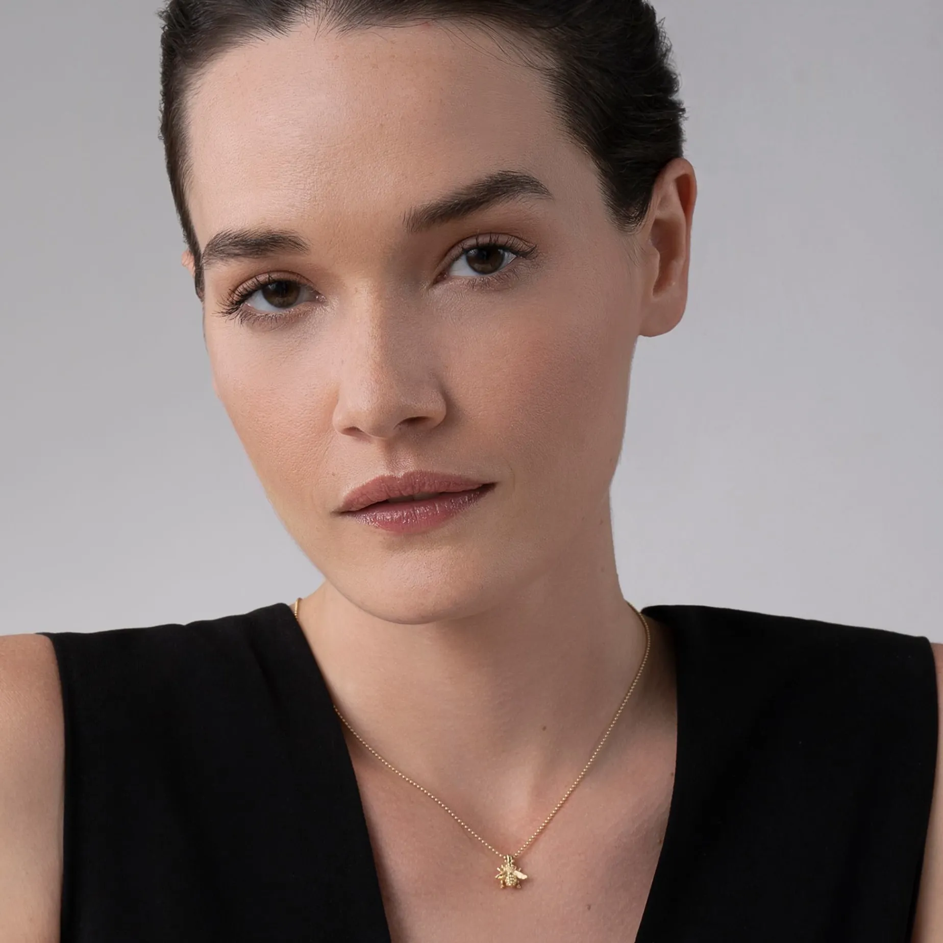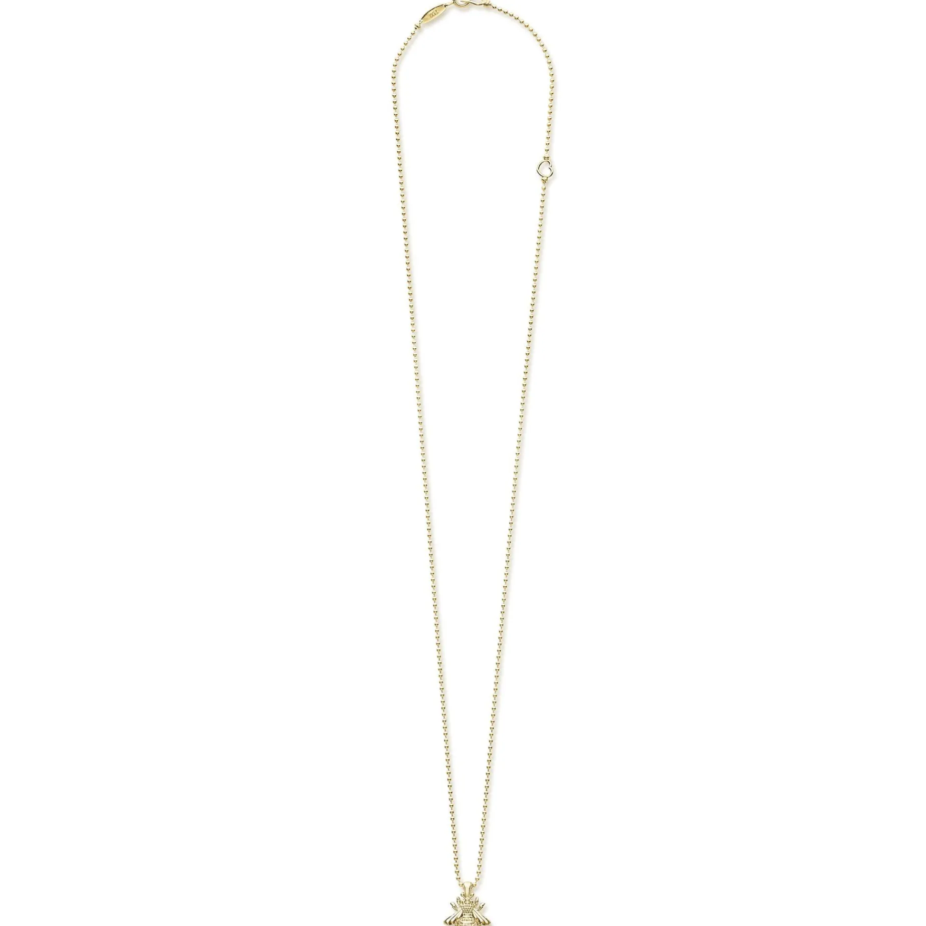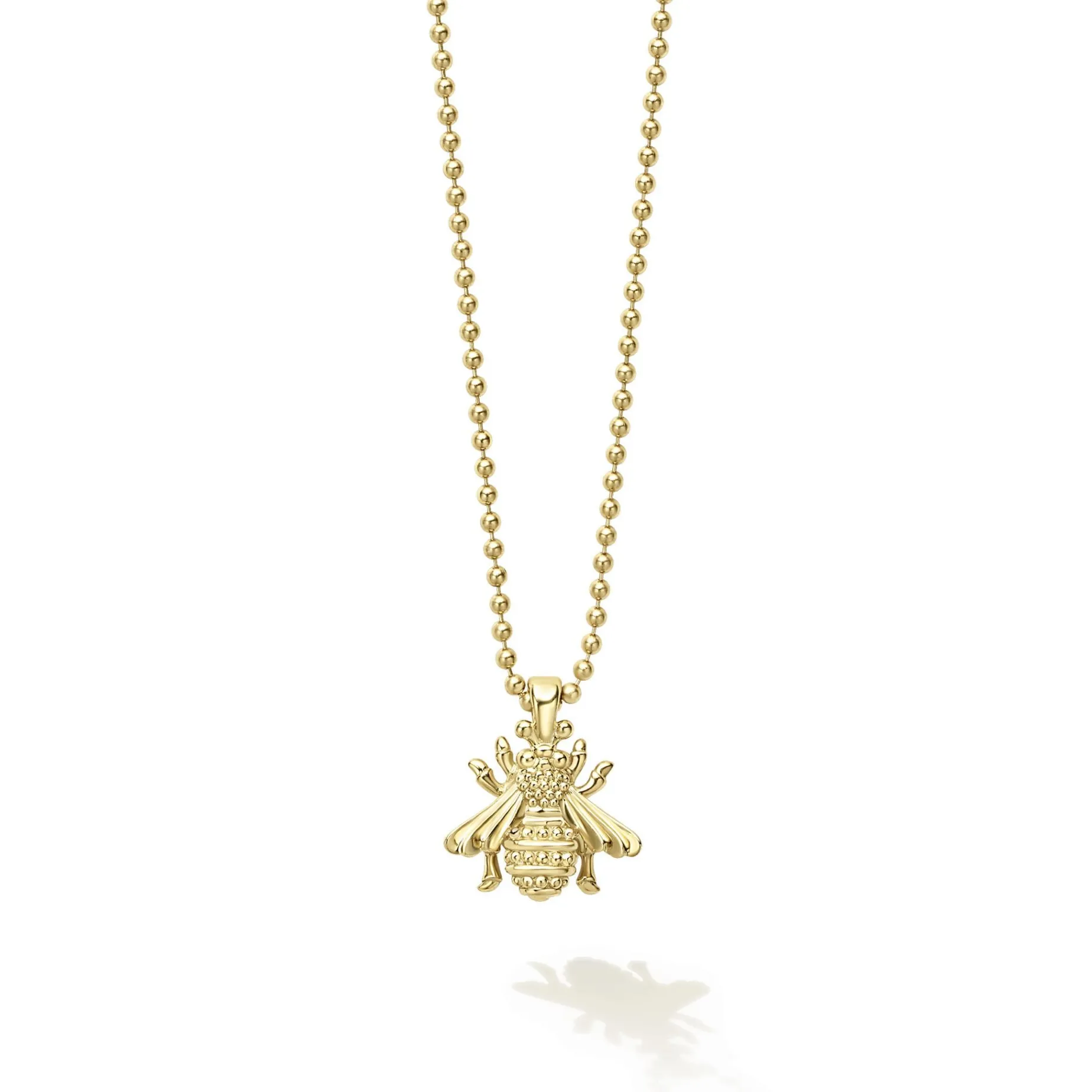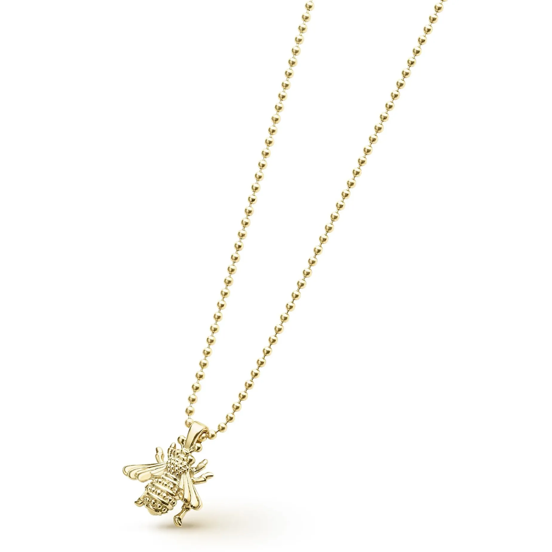 Honeybee Pendant With 18K Gold Caviar Beading On 18K Gold Chain.