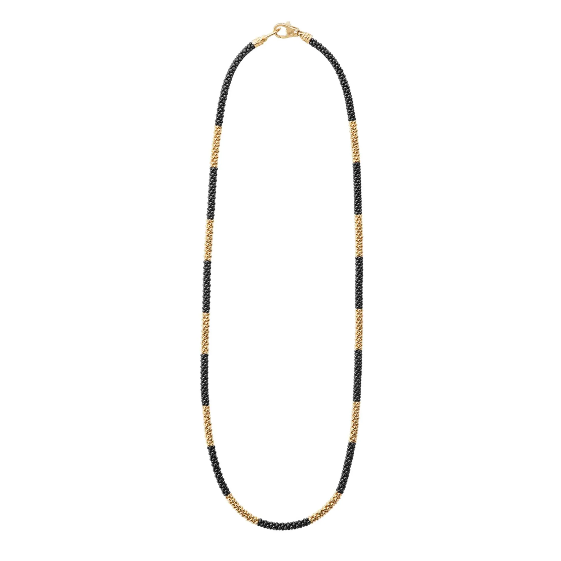 Ten 18K Gold Stations Highlighted By Black Ceramic Caviar Beading On This Necklace Finished With An 18K Gold Lobster Clasp.