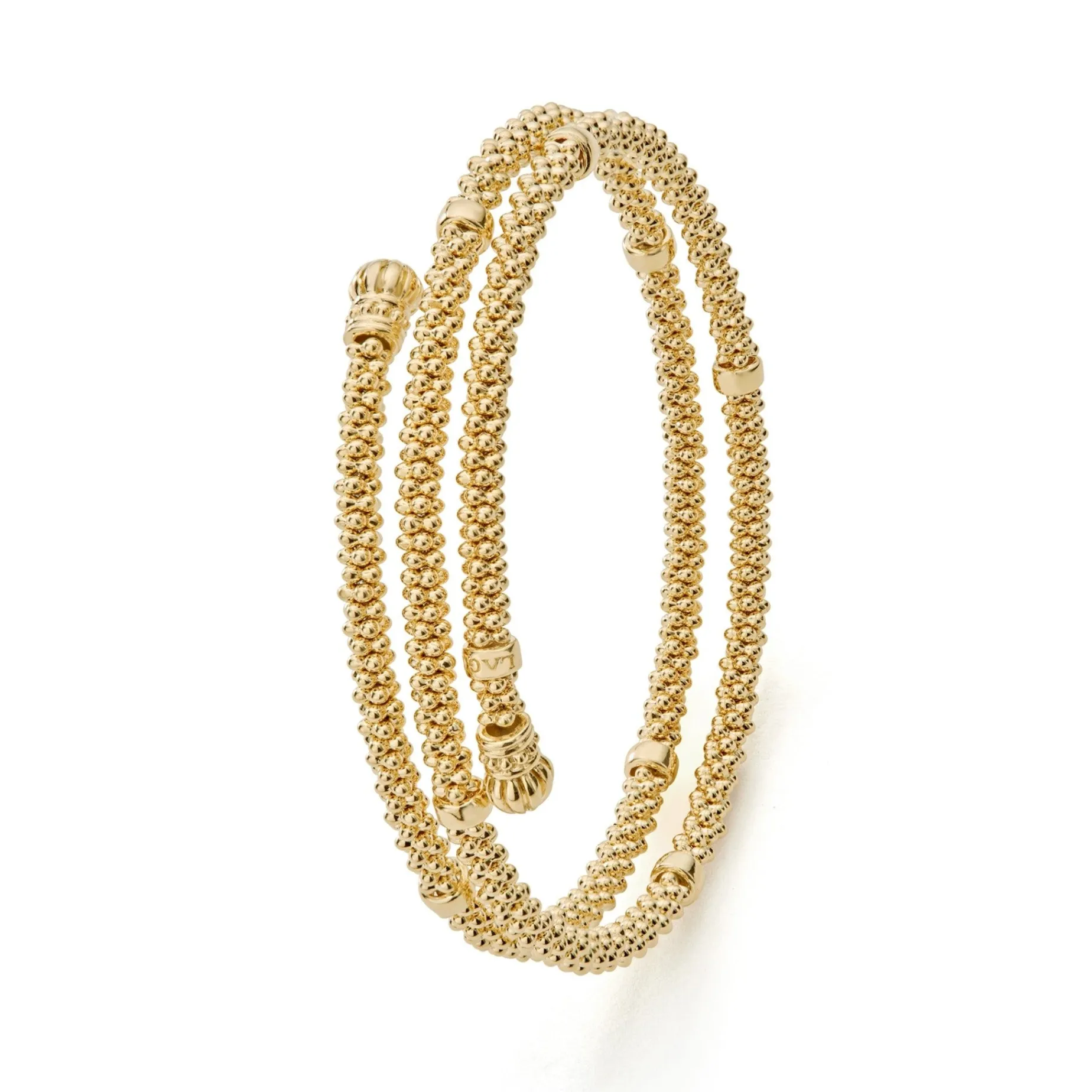18K Gold Caviar Beaded Coil Bracelet With Smooth Stations Form This Coil Bracelet.