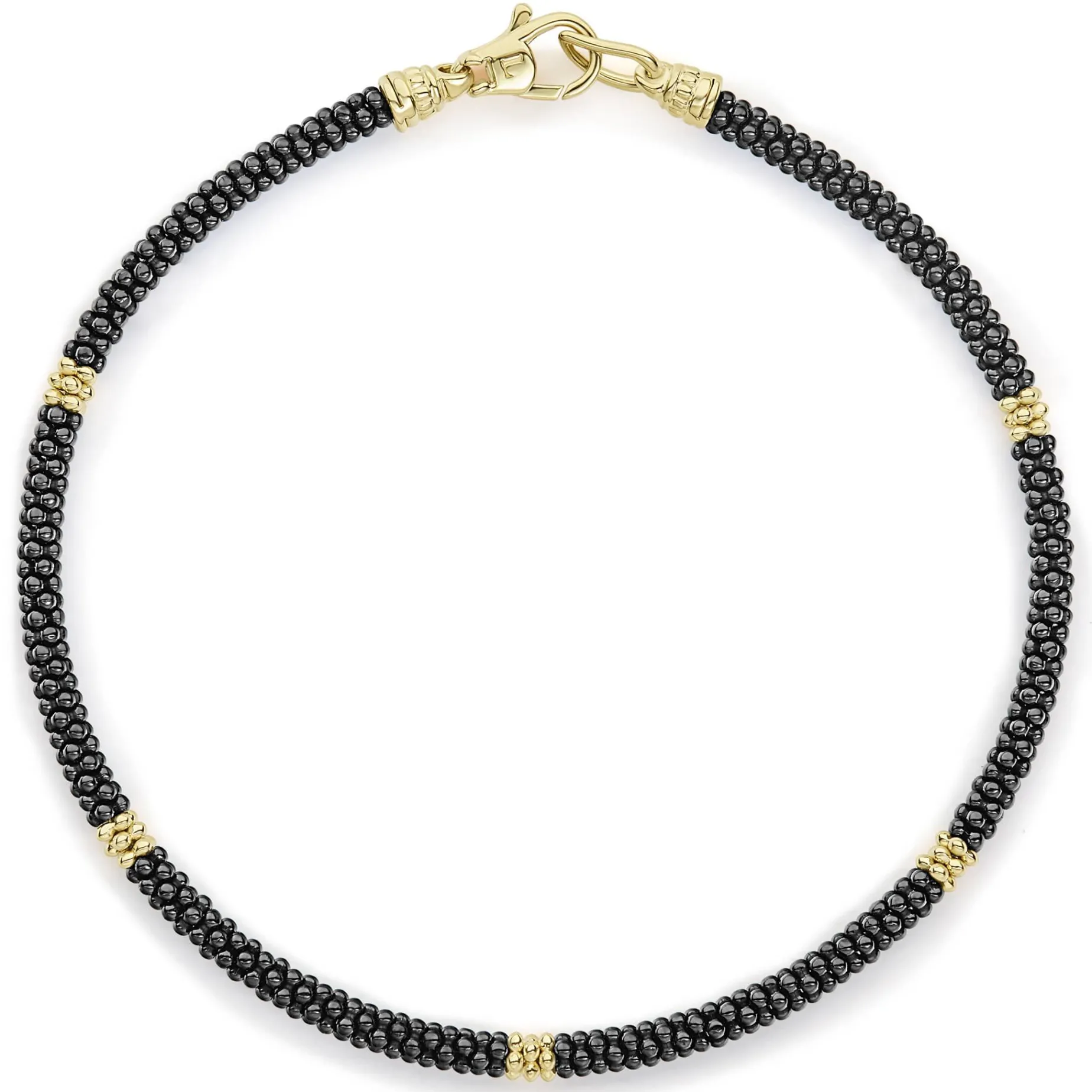Five 18K Gold Stations Highlighted By Black Ceramic Caviar Beading Form This Signature Bracelet.