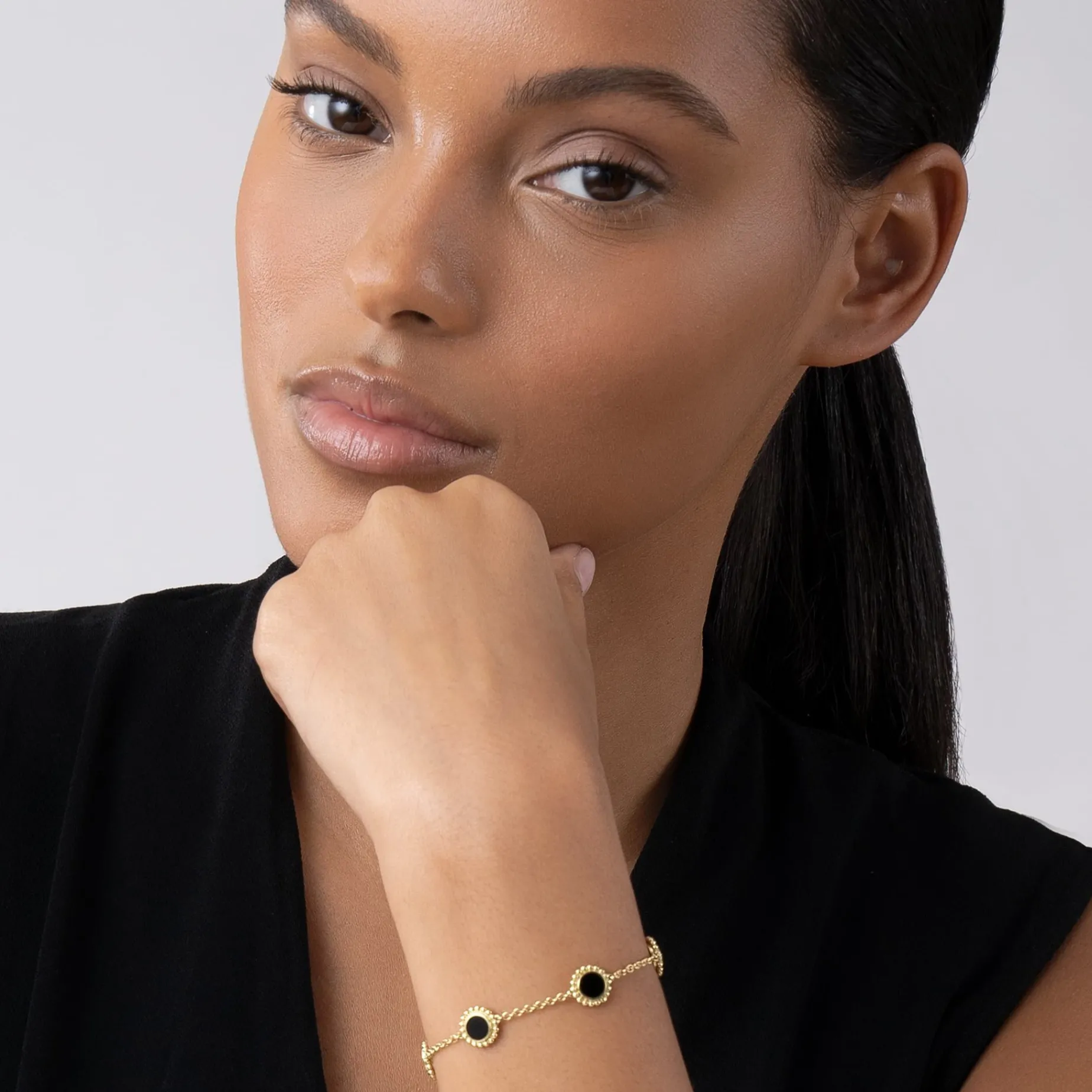 An 18K Gold Bracelet Including Five Onyx Inlay Stations With Caviar Beaded Details.