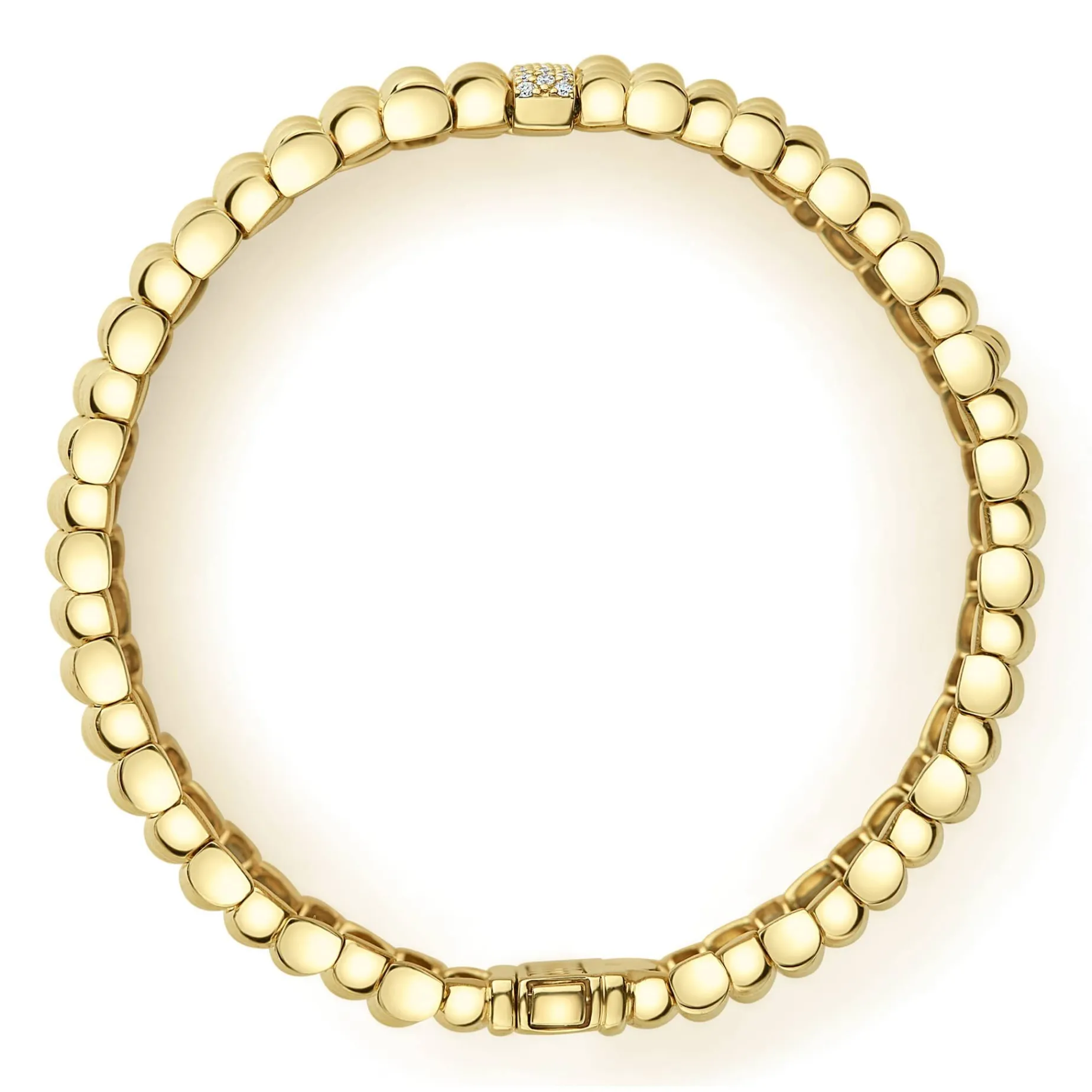 A Single Diamond Station Highlighted By Dramatic 18K Gold Caviar Beading Form This Bracelet. Lagos Diamonds Are The Highest Quality Natural Stones.