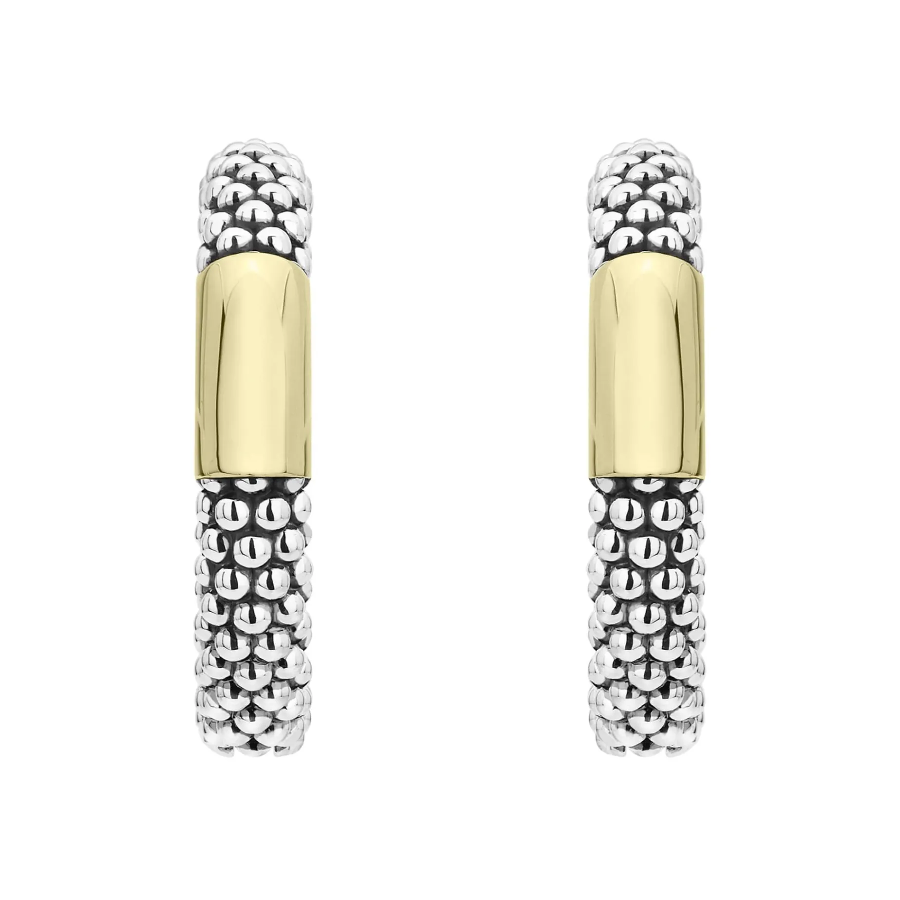 Hoop Earrings With Smooth 18K Gold And Classic Sterling Silver Caviar Beading.