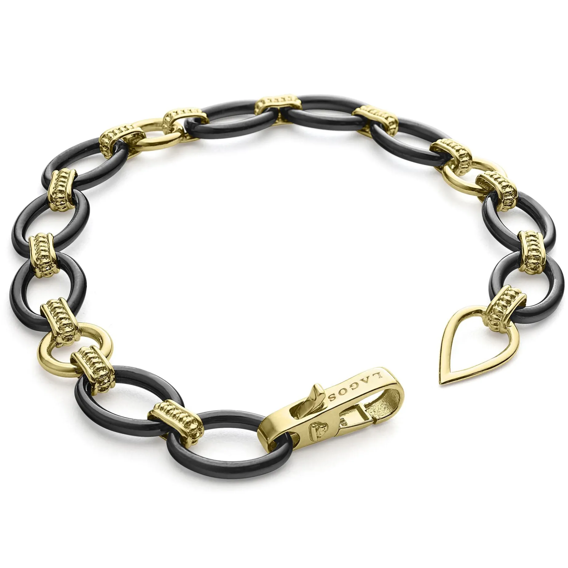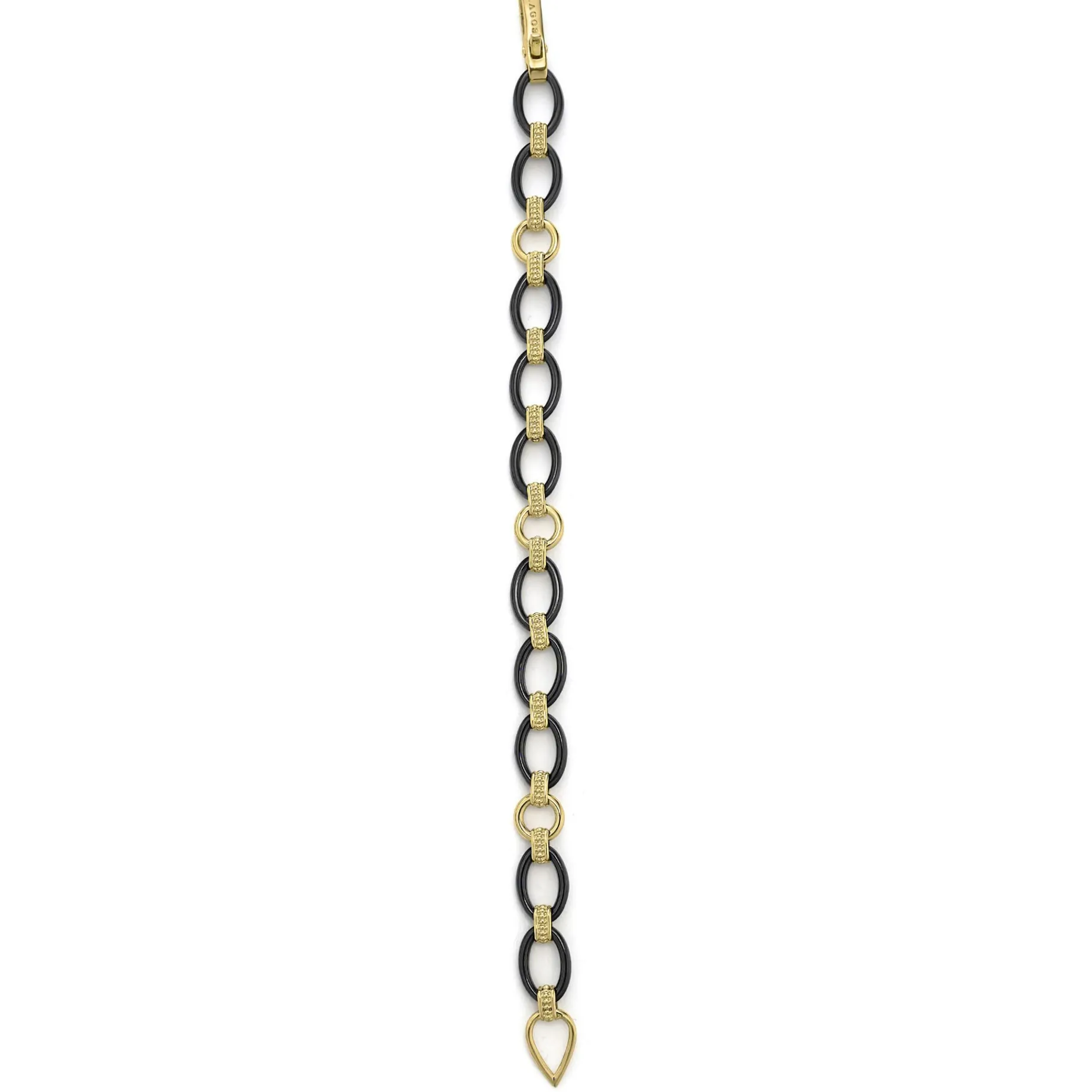 A Classic Bracelet With 18K Gold And Black Ceramic Oval And Beaded Links.
