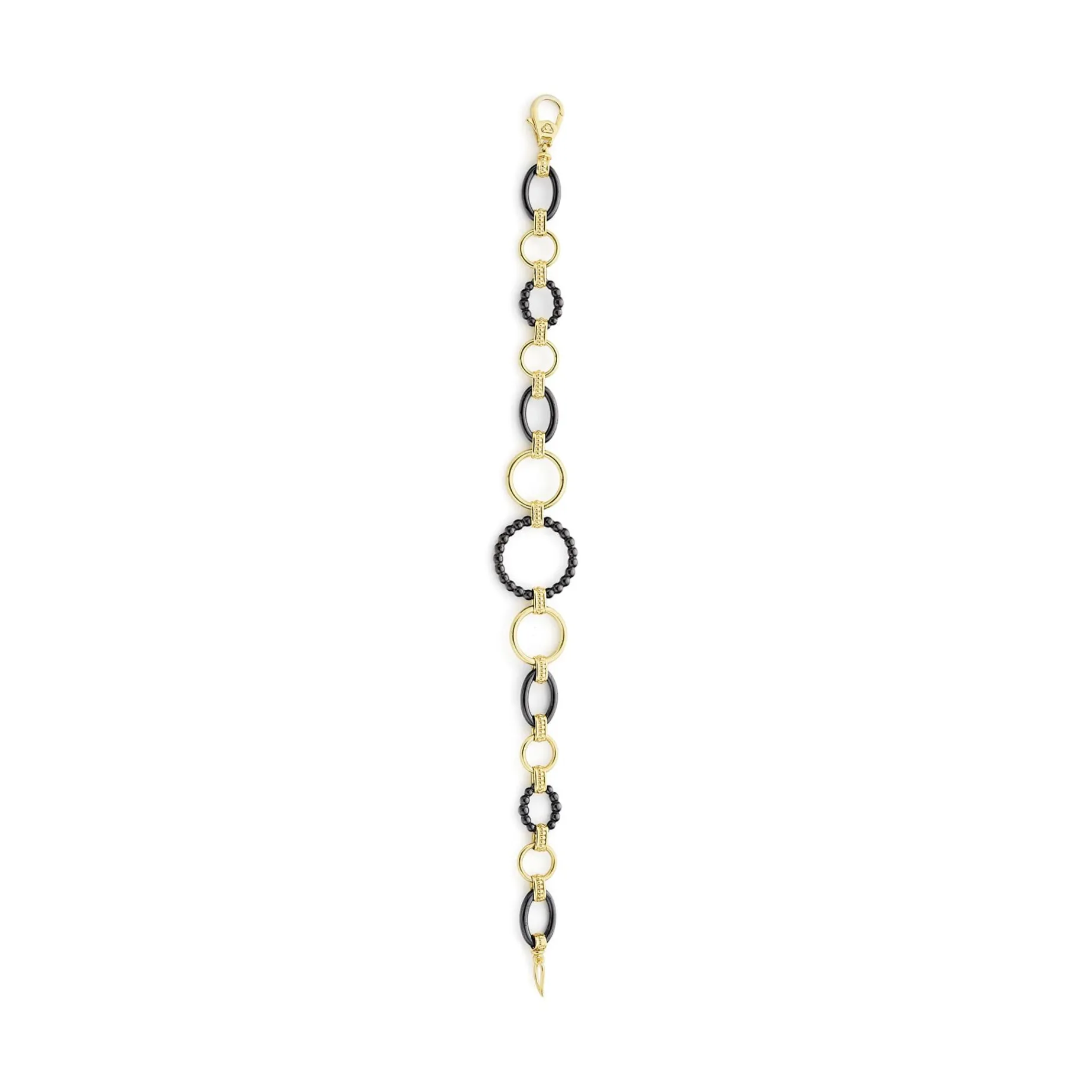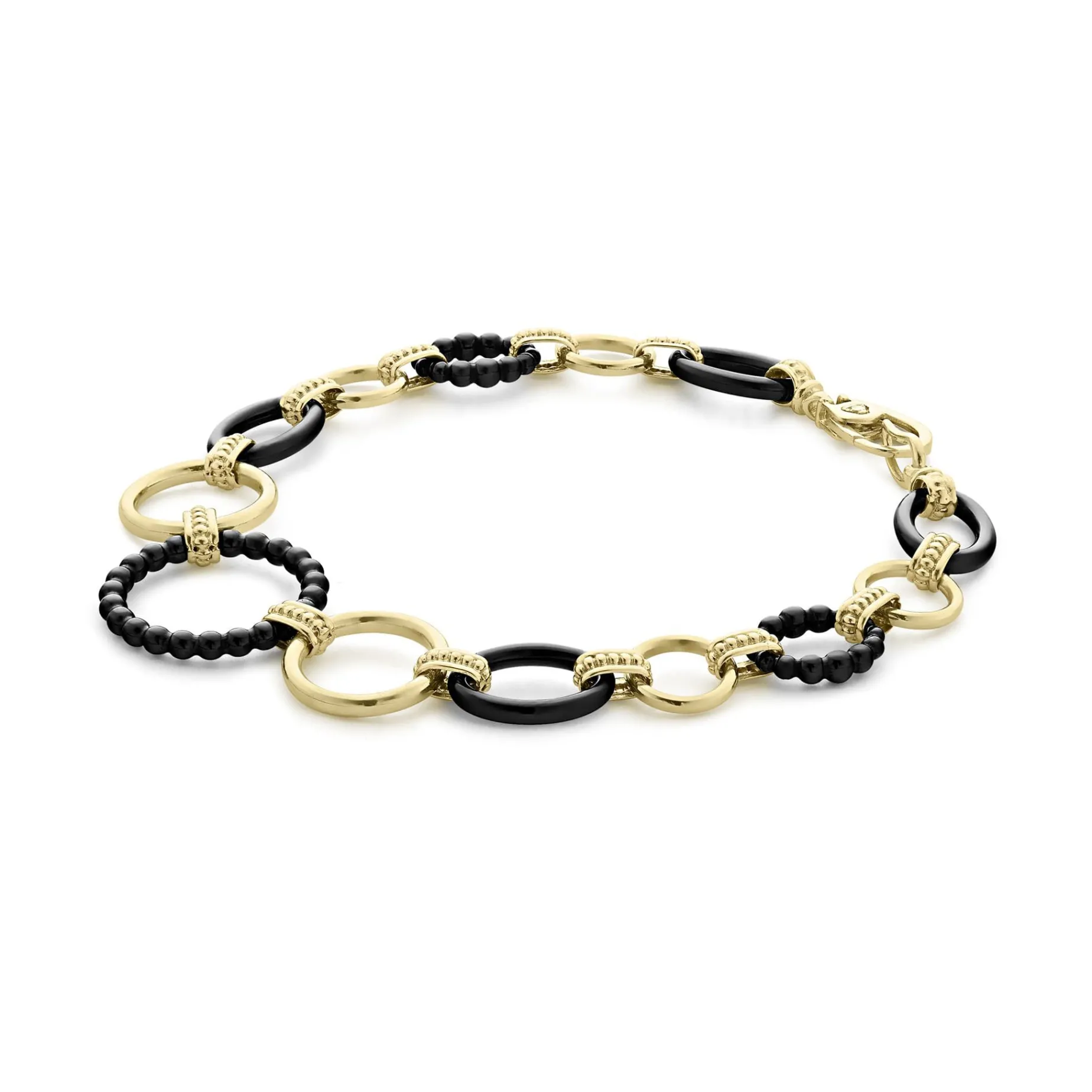 A Classic Bracelet With 18K Gold And Black Ceramic Round, Oval And Beaded Links.