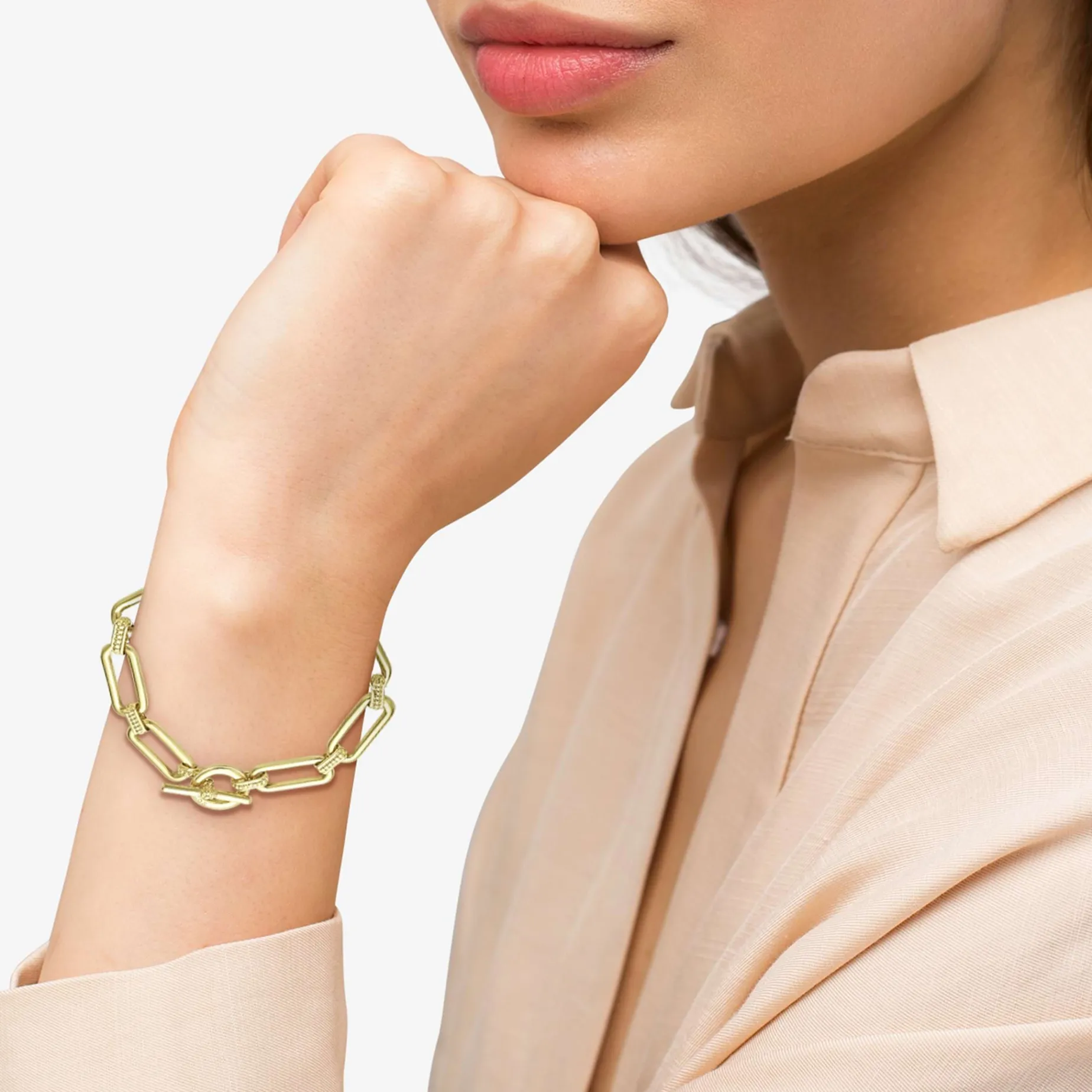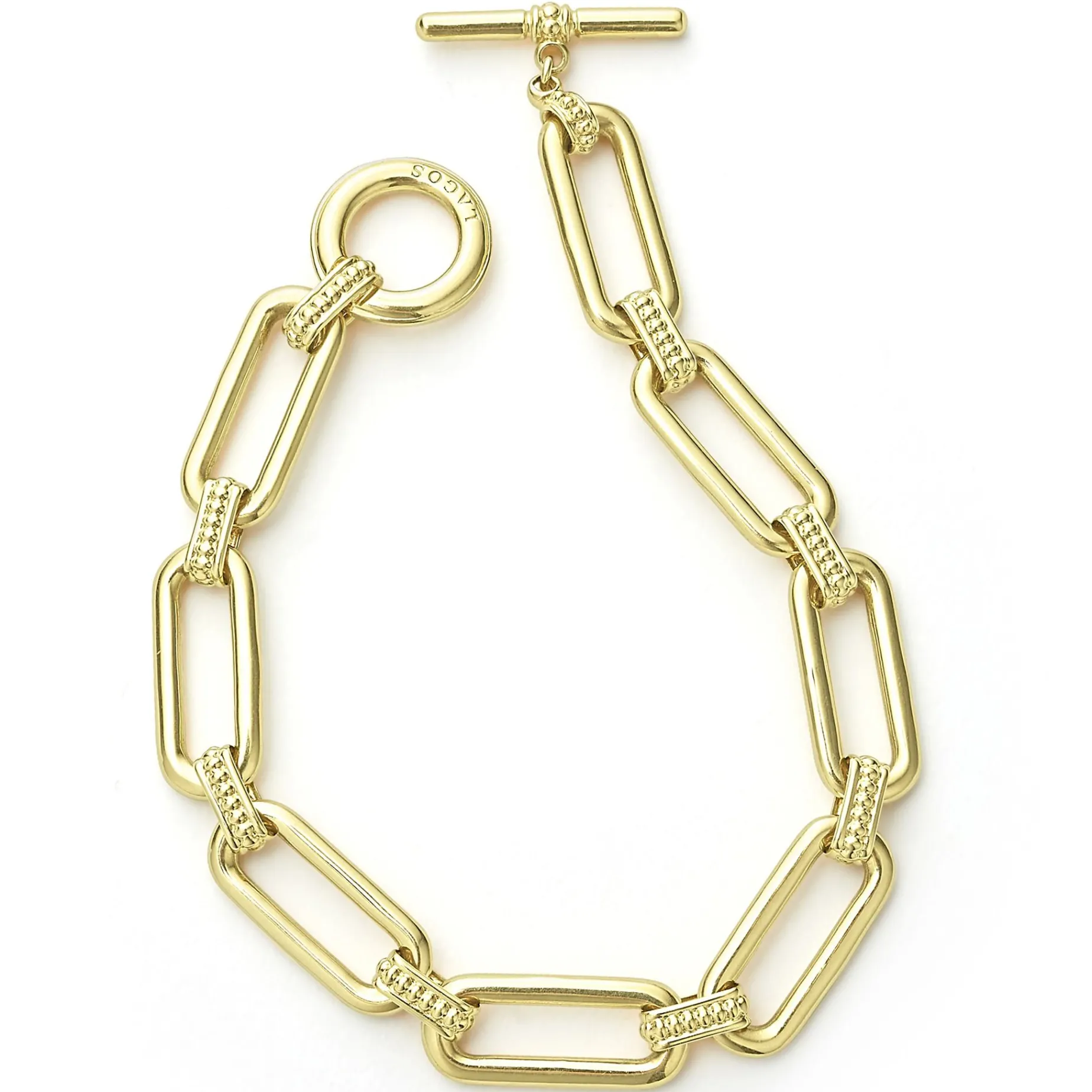 18K Gold Variations Of Caviar Beading & Fluting Elements Form This Timeless Link Bracelet.
