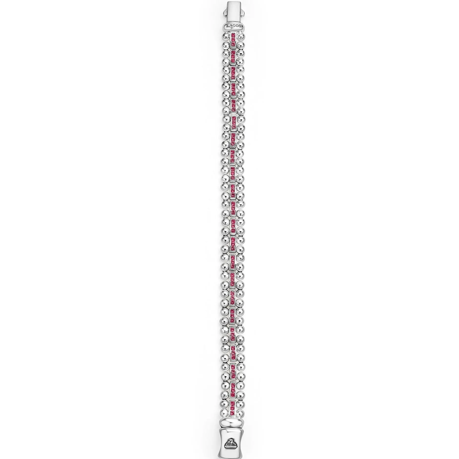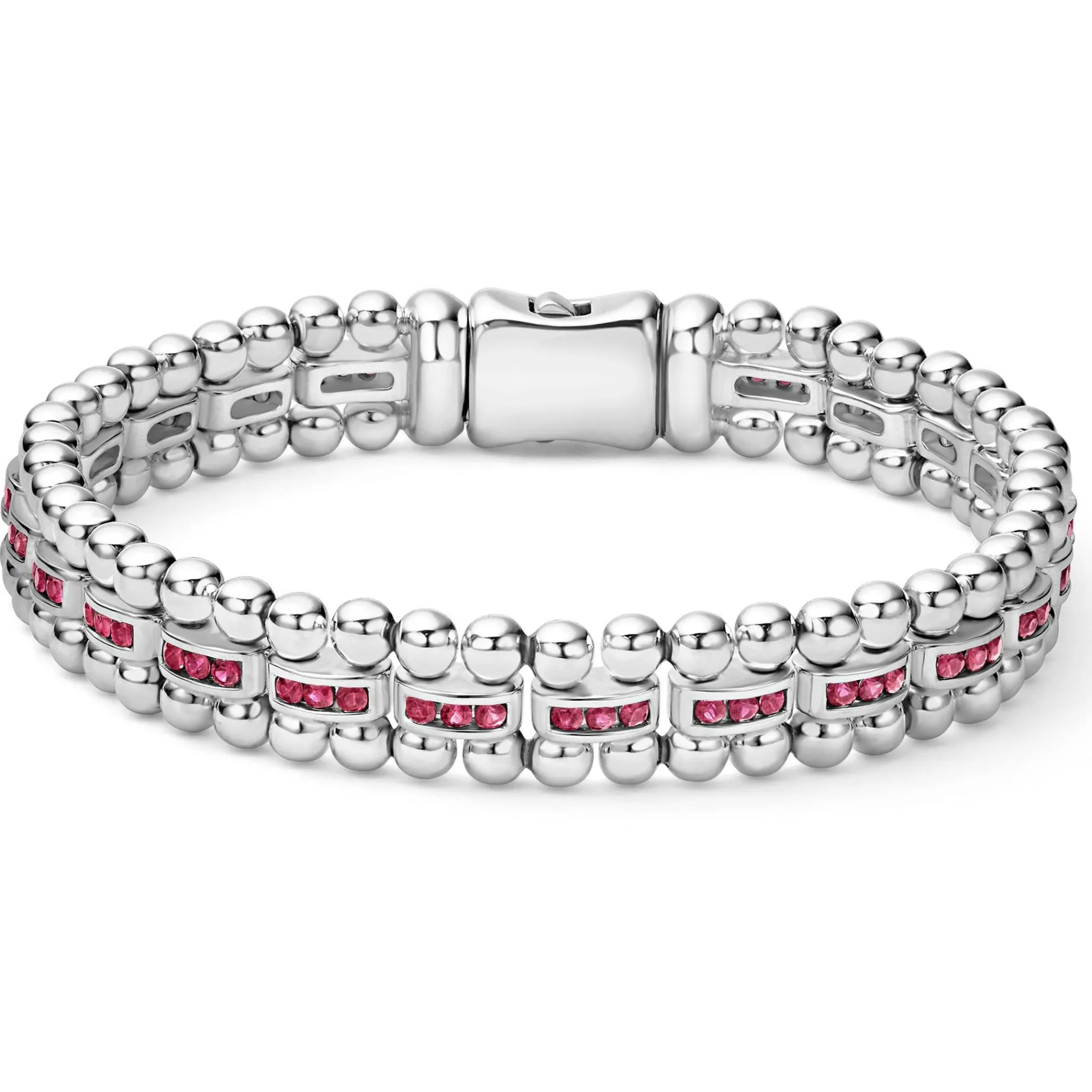 A Lagos Exclusive. Sterling Silver Caviar Link Bracelet With Precious Ruby Gemstone Detailing.
