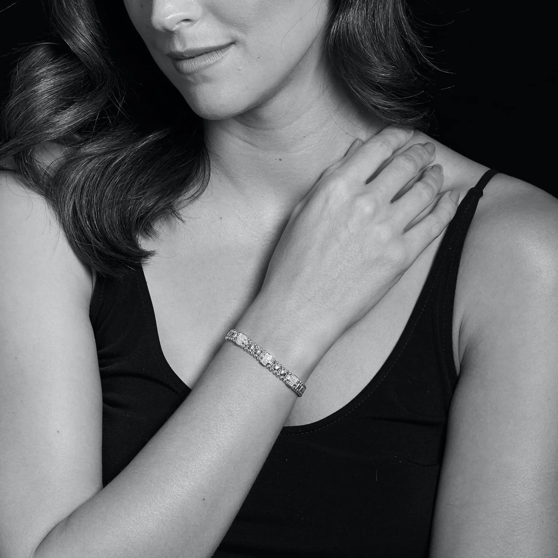 Three Pavé Diamond Stations Set By Sterling Silver Caviar Beading Form This Signature Link Bracelet. Lagos Diamonds Are The Highest Quality Natural Stones.