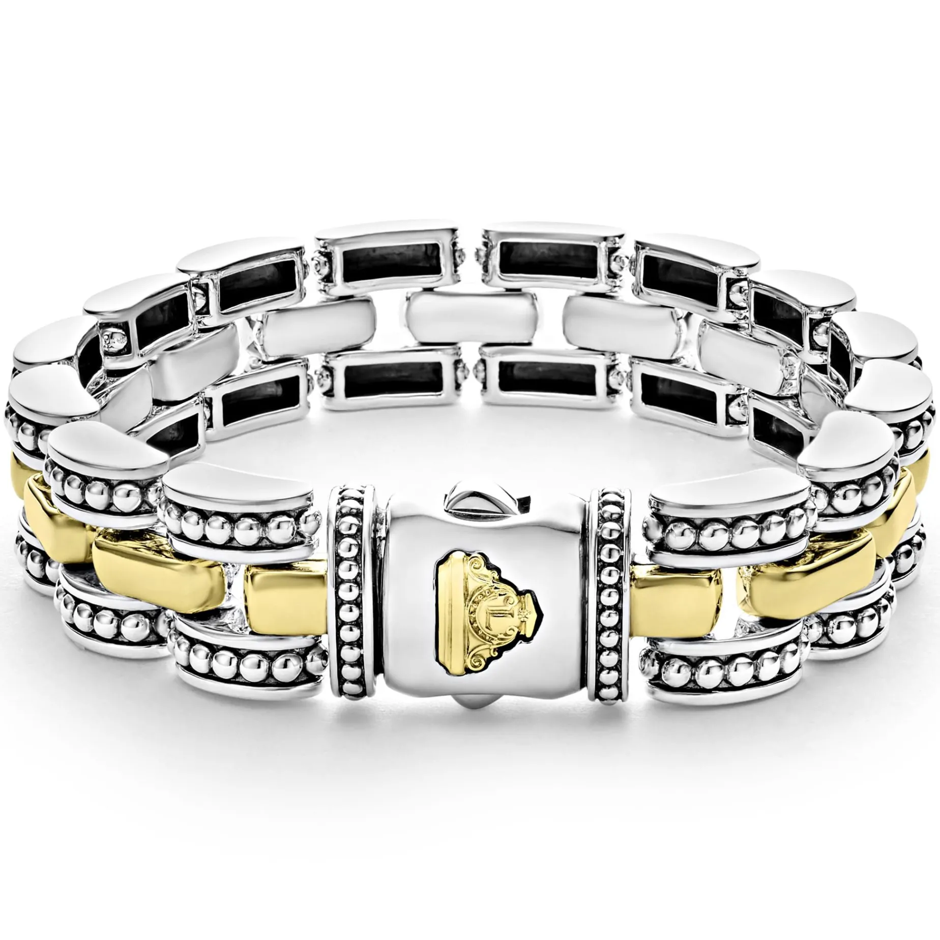 18K Gold And Sterling Silver Caviar Beading Forms This Link Bracelet.