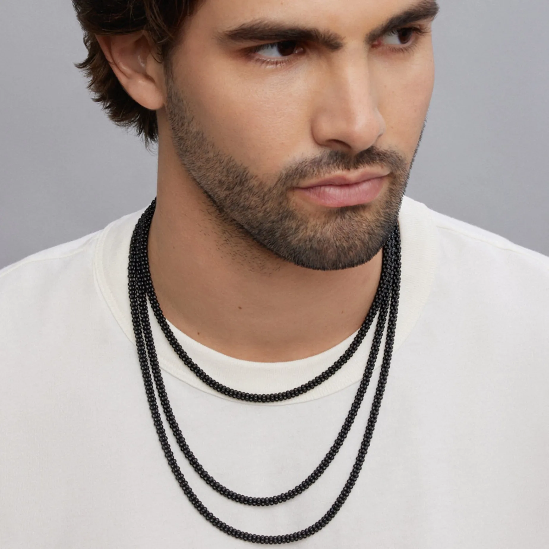 Matte Black Ceramic Caviar Beaded Necklace Finished With A Signature Lobster Clasp.