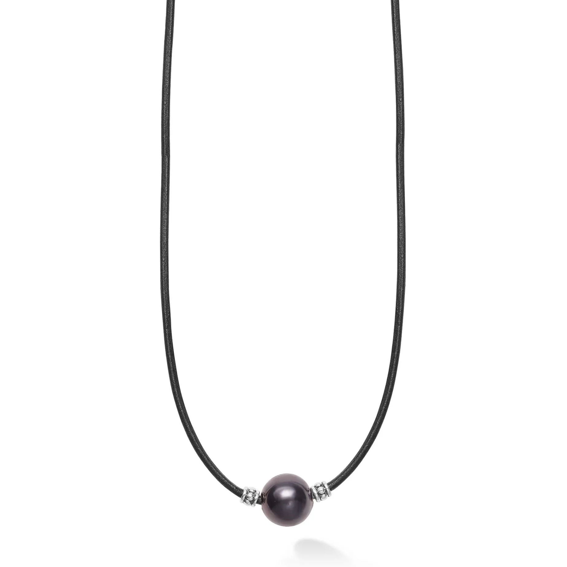A Single Tahitian Black Pearl Station Accented By Sterling Silver Finished On A 20 Inch Cord Necklace.
