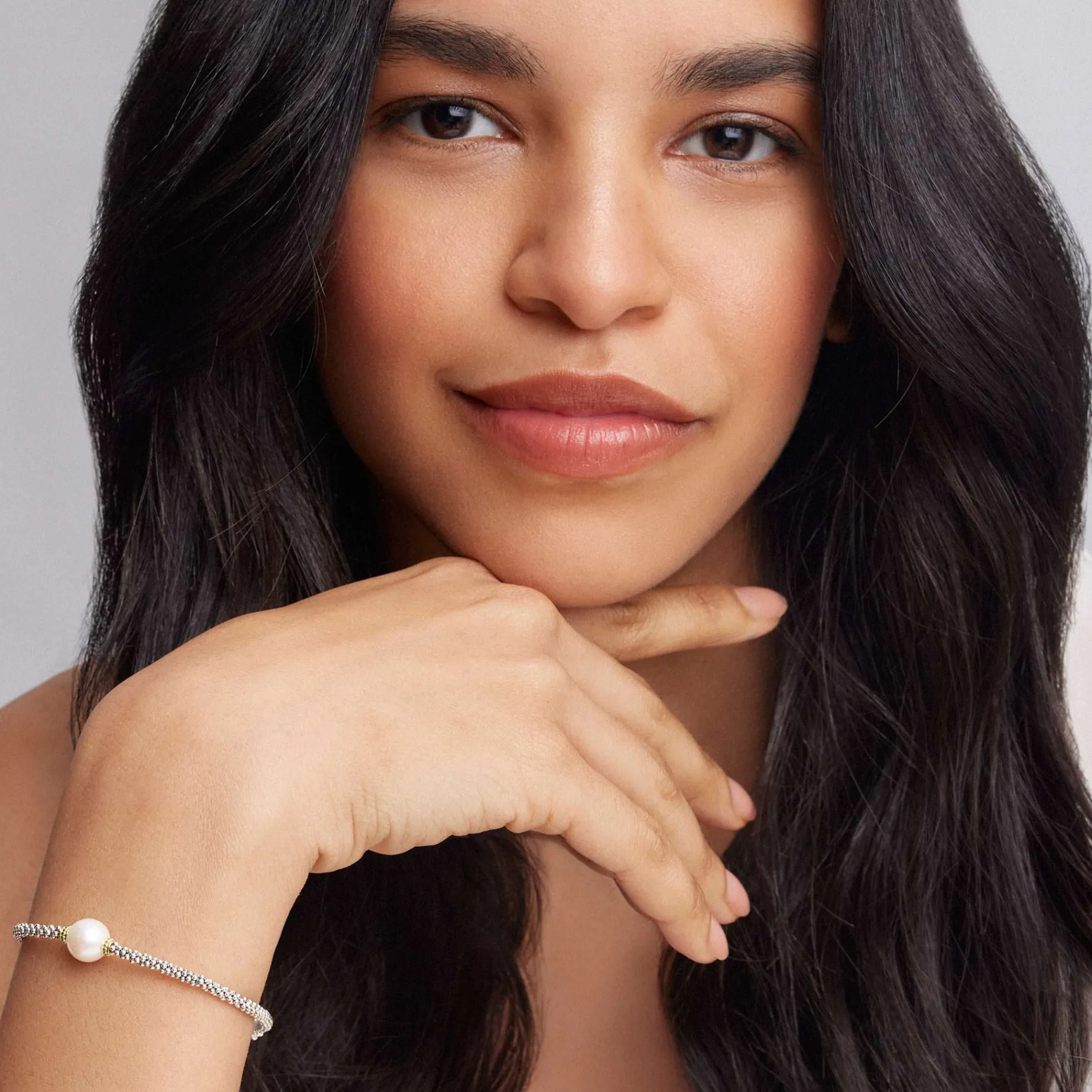 A Cultured Freshwater Pearl Station With Caviar Beading In 18K Gold And Sterling Silver Form This Versatile Bracelet.