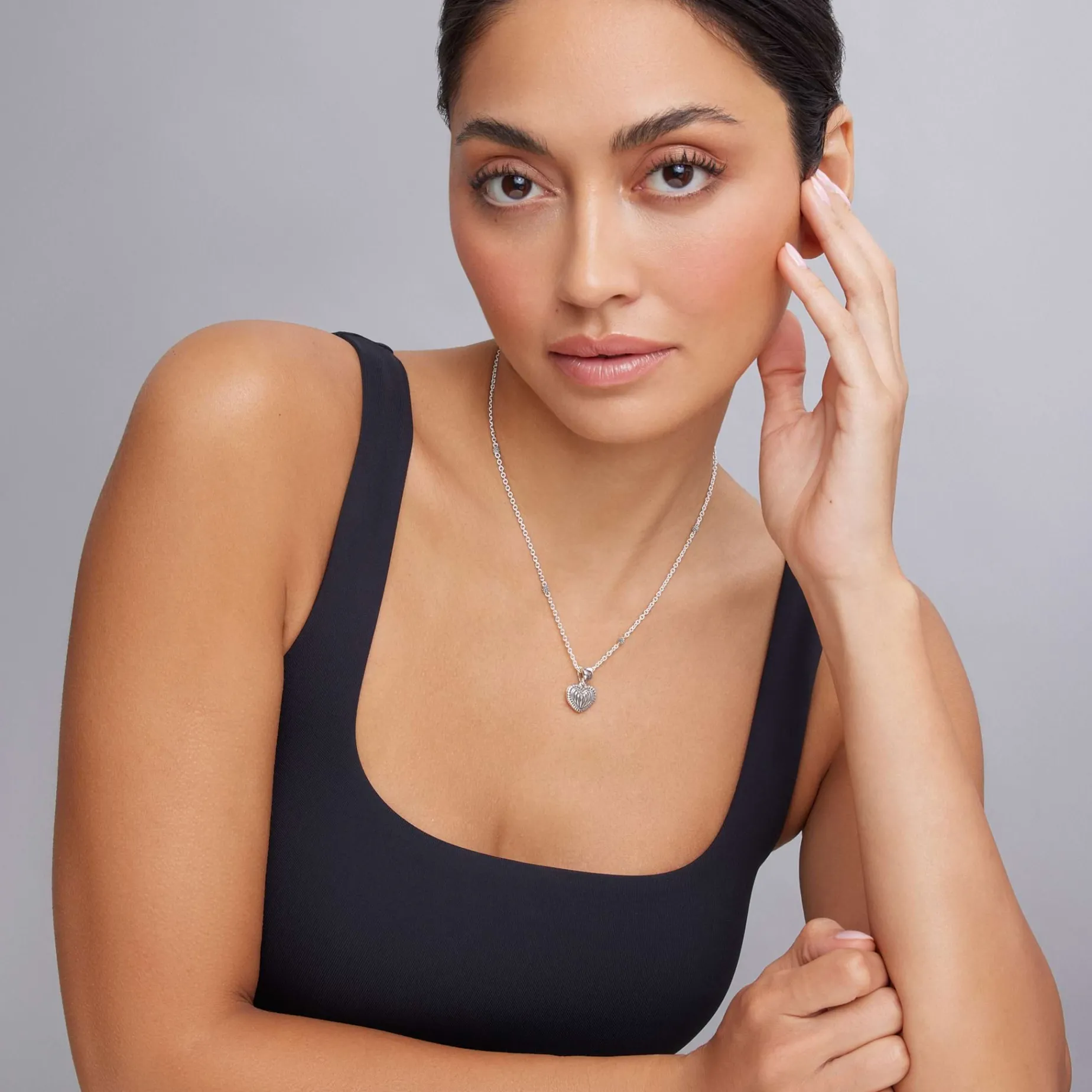 A Lagos Exclusive. Petite Sterling Silver Heart Pendant With Fluting And Caviar Beading Finished On A Versatile Link Necklace With Six Sterling Silver Caviar Beaded Stations
