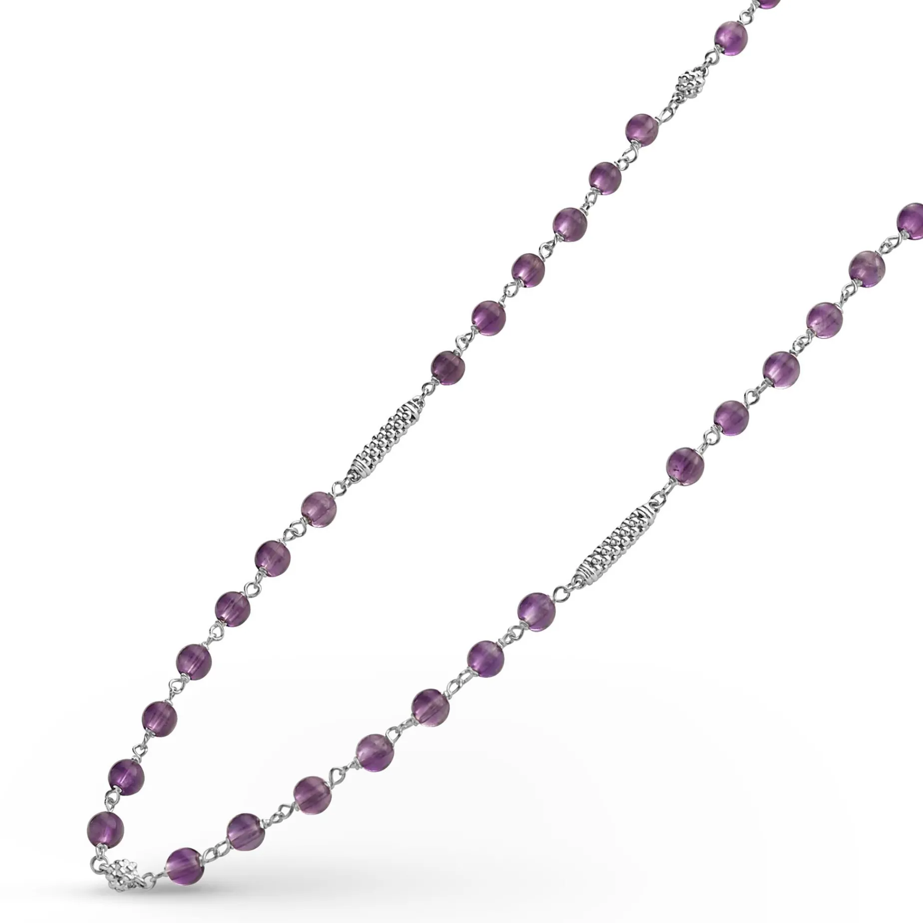 Amethyst And Sterling Silver Caviar Beaded Necklace Finished With A Toggle Clasp. Necklace Adjustable 16 To 18 Inches.