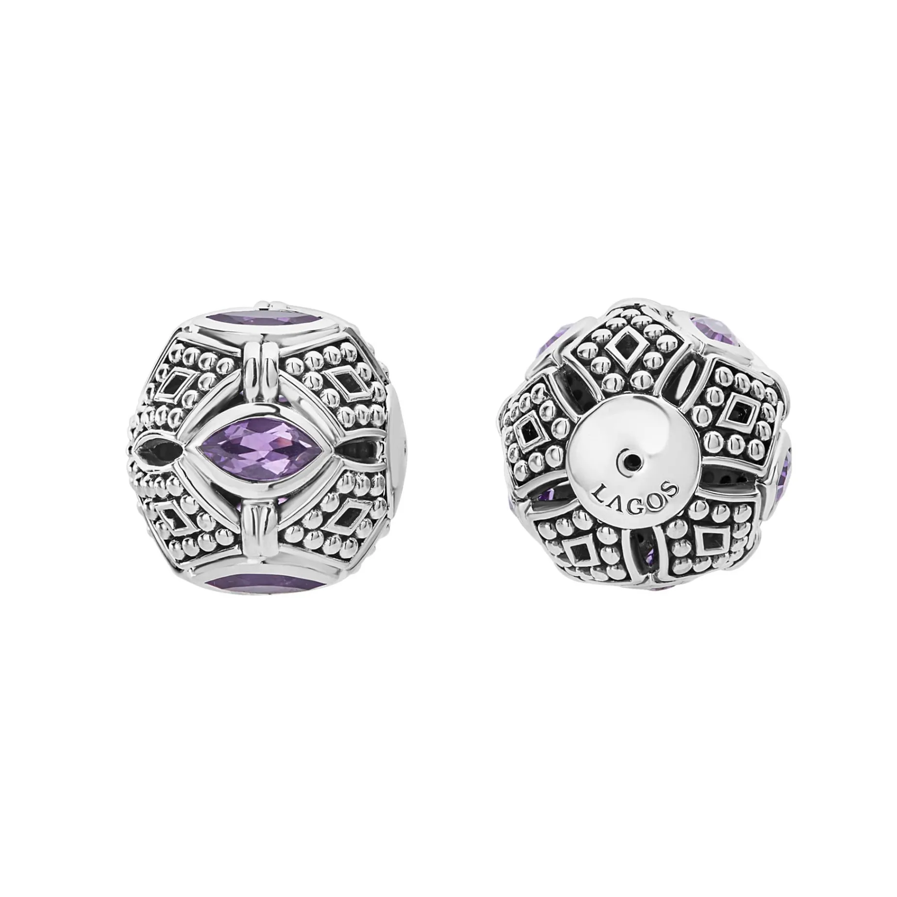 A Lagos.Com Exclusive. Amthyst Gemstones With Sterling Silver Beading Form These Versatile Earring Backs. Wear This Back With Any Lagos Stud Earring Front.