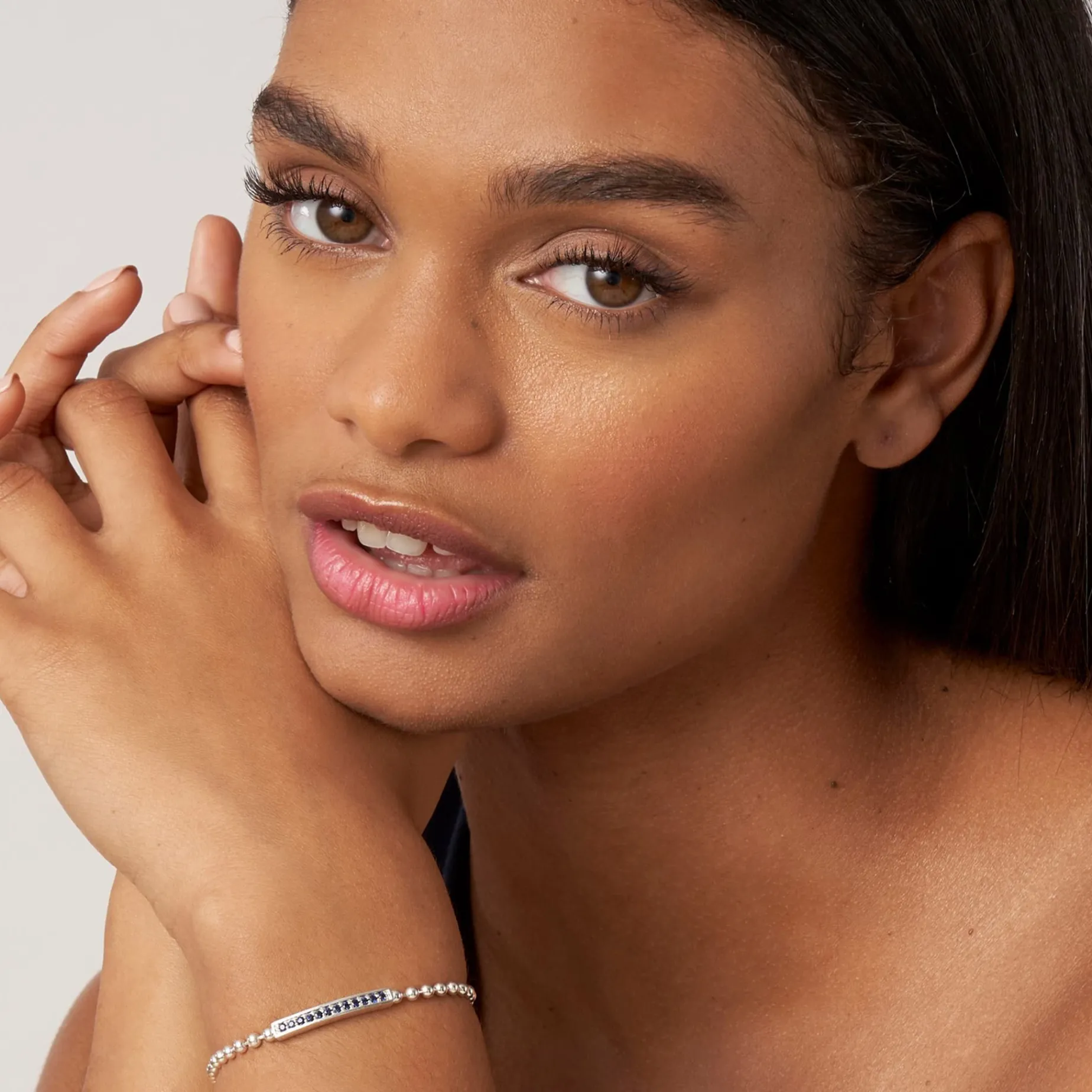 A Linear Blue Sapphire Gemstone Station Set By Sterling Silver Caviar Beading Forms This Bracelet.