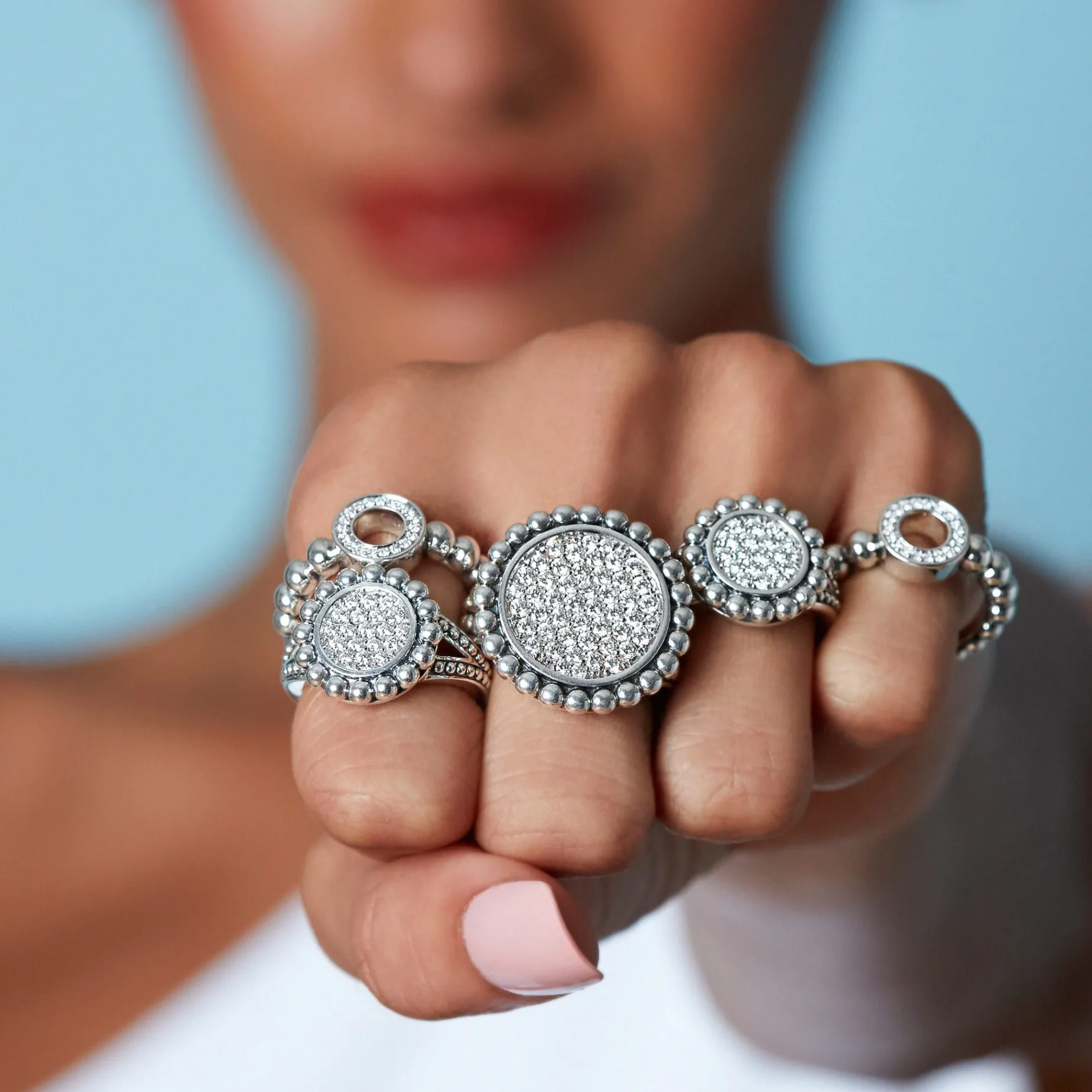 Pavé Diamond Circle Ring Surrounded By Sterling Silver Caviar Beading. Lagos Diamonds Are The Highest Quality Natural Stones.