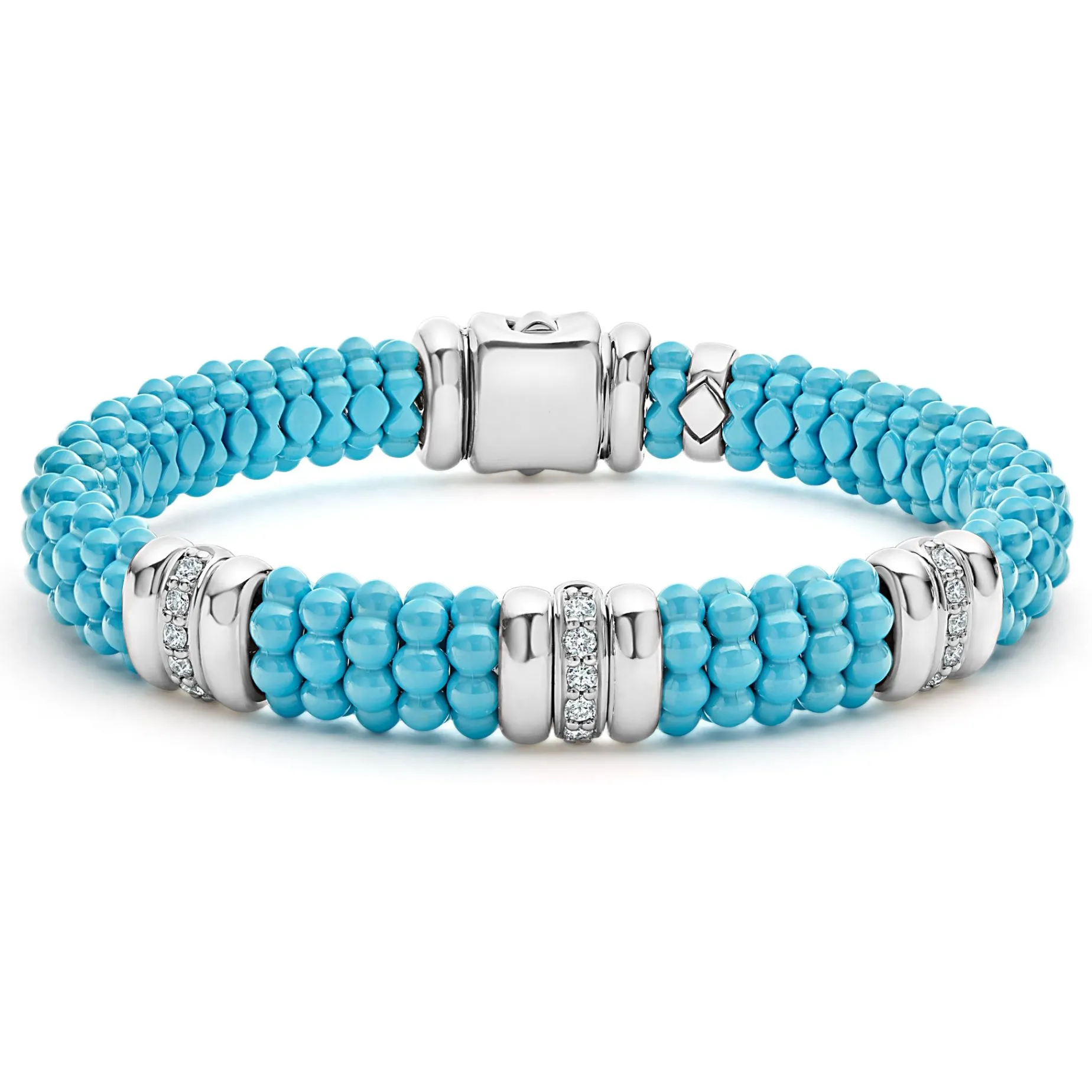 Three Diamond And Sterling Silver Stations Set In A Ceramic Beaded Bracelet.