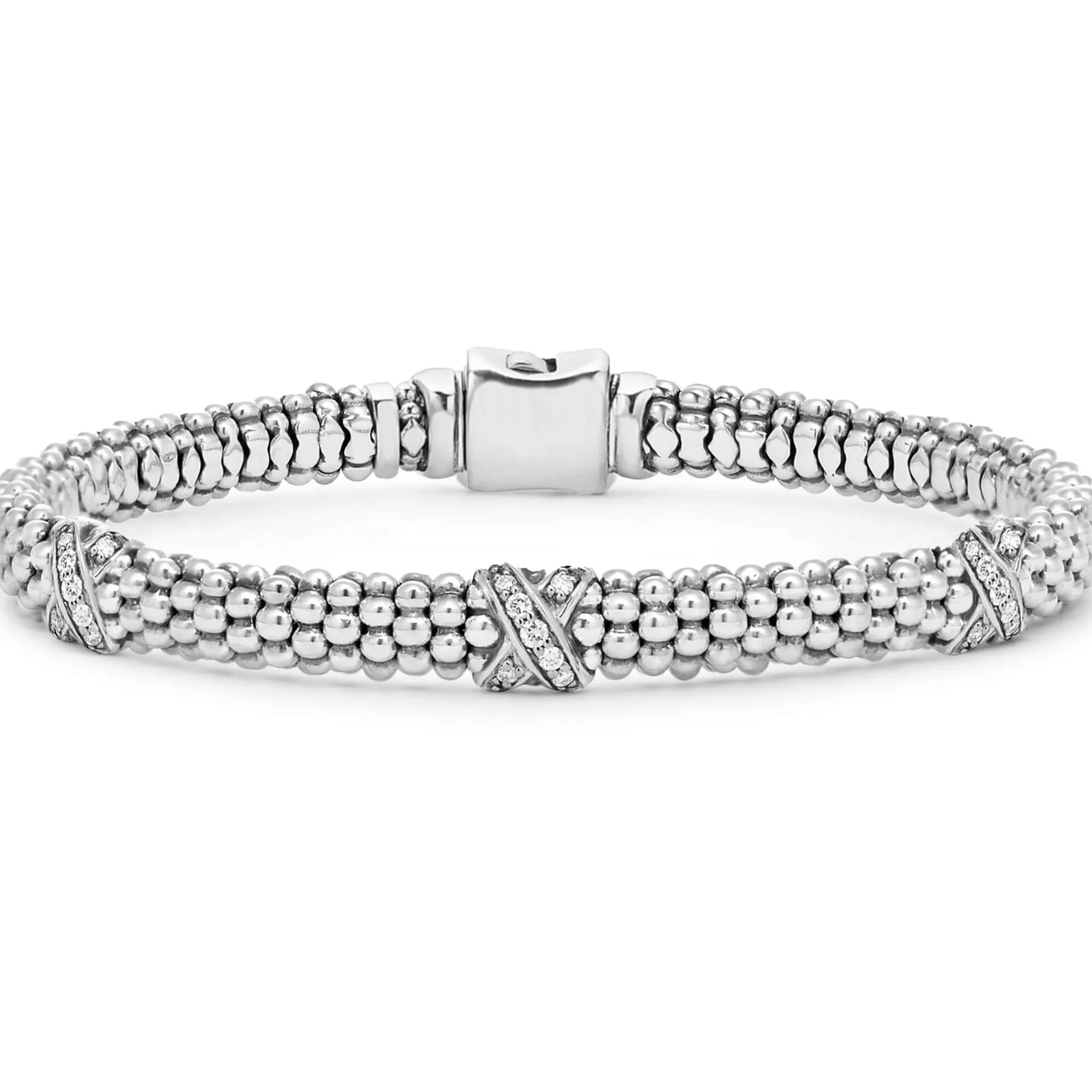 Silver<LAGOS Three Station Silver X Diamond Bracelet | 6Mm